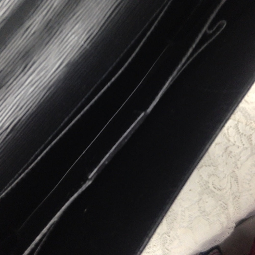 This is a pre-owned 2 gussets briefcase made of black epi Leather. It measures about 16inches long, 12 inches high and 6 inches wide. It has some scratches, spots, discoloration, scuffs, etc. but overall it is in good condition as shown in photos. Date code: SR1014-Made in France, November 2004.
