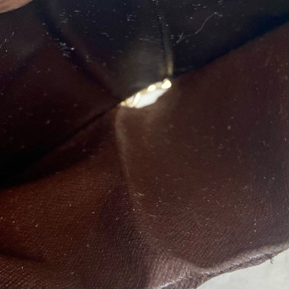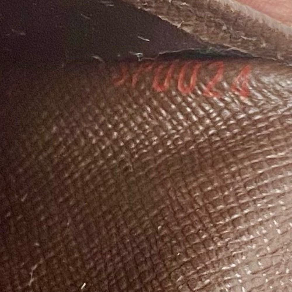 This is a pre-owned bi-fold passport wallet made of Damier Ebene coated canvas. This wallet has a slots for bills, IDs and Credit cards. Also, it has a pocket for coins or keys. Folded it measures about 6 inches long and 4.5 inches wide. It is in good condition with minimal wear, soiling, discoloration or fading and edge wear as shown in photos. Crossbody chain is about 50 inches long and it is not original or was added to make it as a crossbody. Date Code: SP0024 - Made in France- February 2004.
