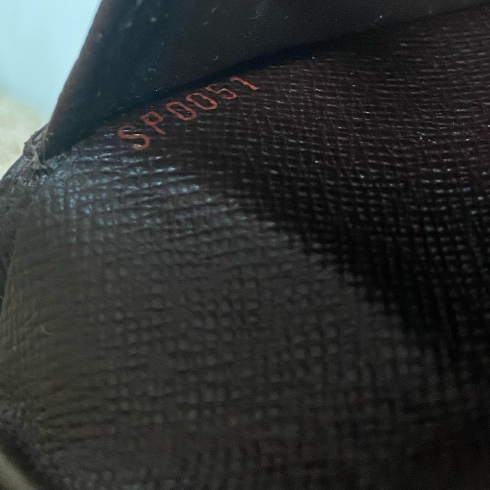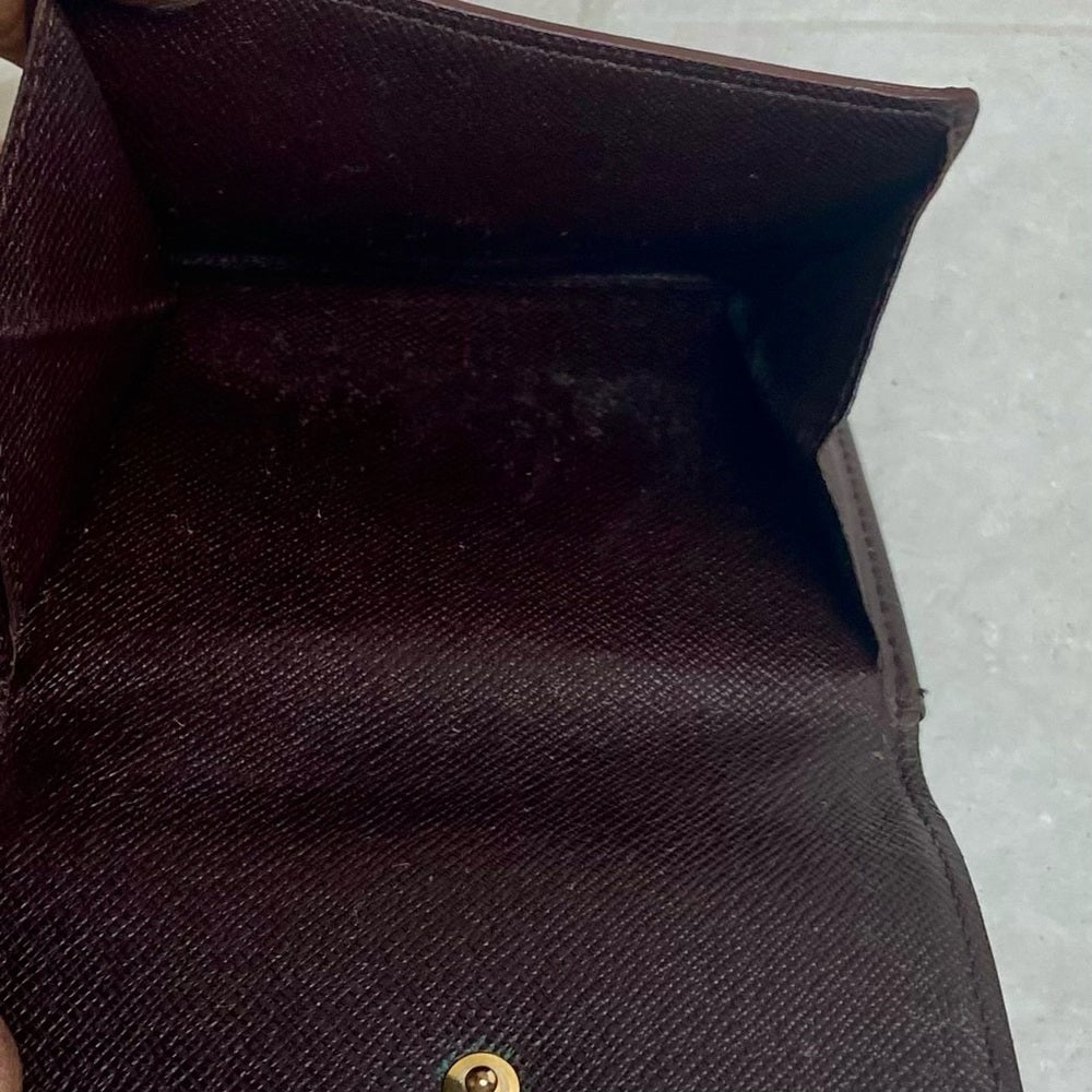 This is a pre-owned compact Mens compact wallet made of Damier Ebene coated canvas. Folded it measures about 4 inches long and 4 inches wide. It has minimal fading or discoloration, soiling abs edge wear, but overall it is in good condition as shown in photos. Date code shown is SP0051- Made in France, May 2001.
