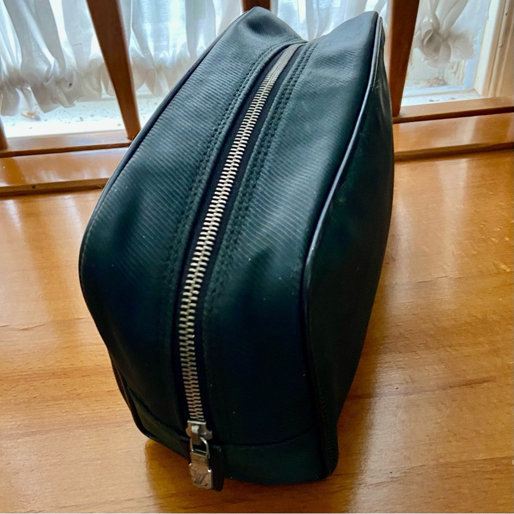 This is a pre-owned multi function pouch made of dark green canvas. It measures about 10 inches long, 6 inches wide and 4 inches deep. It is in good condition with minimal wear and has inner lining issue and sealant was partially peeled off as shown in photos. It is marked: Louis Vuitton, Paris, Made in Spain. Date code is CA4182.