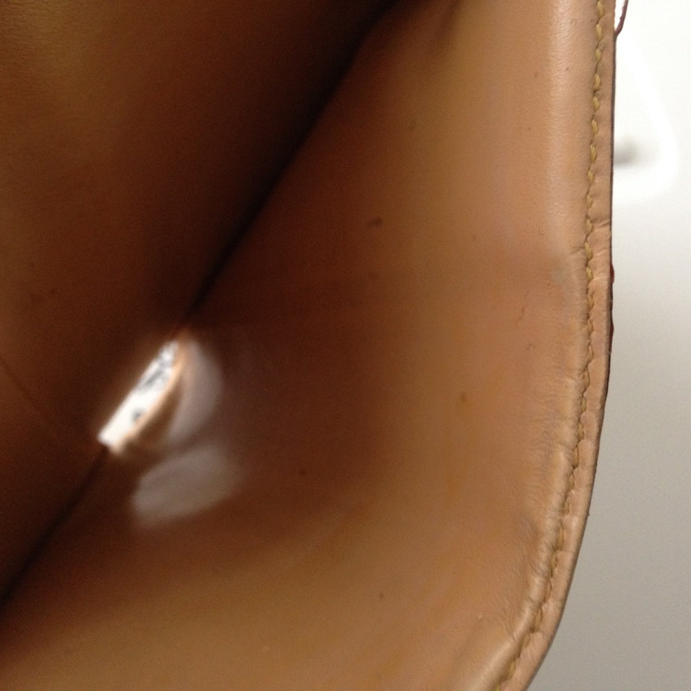 This is a beautiful bi-fold, long wallet made of multi-color mono on white background and leather interior. This wallet has a slots for bills, IDs and Credit cards. Folded it measures about 5.5 inches long and 4 inches wide. It has issues such as fading, discoloration, soiling, staining, metal wear, cracking,corner and edge wear as shown in photos.Date Code: TH0010-Made in France, January 2000.