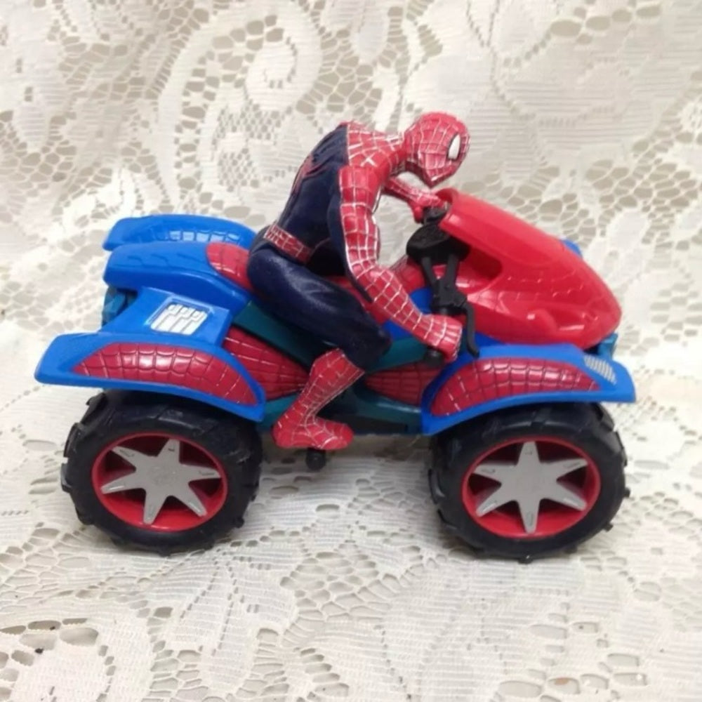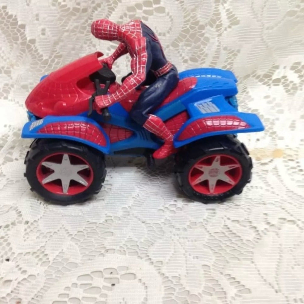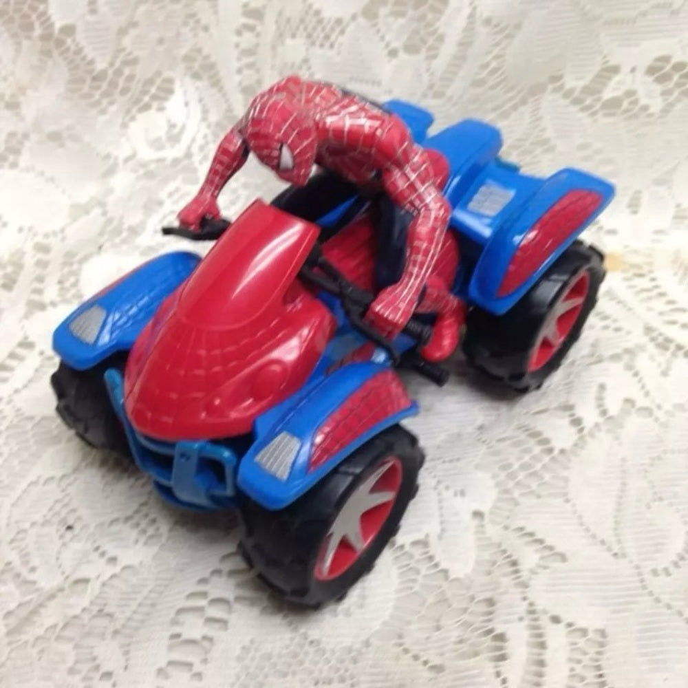 This is a beautiful action figure of Spiderman with Bike set and together it measures 6 inches long and 5 inches wide. It is in good condition as shown in photos