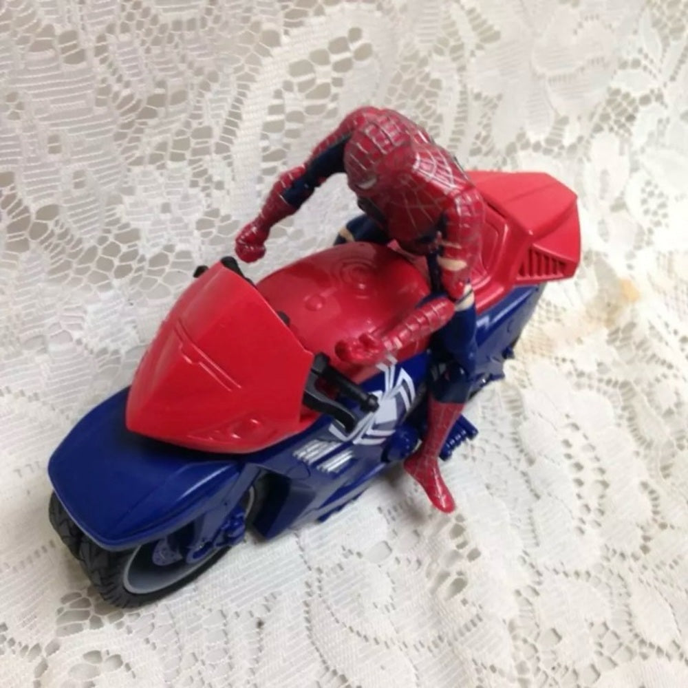 This is a beautiful action figure of Spiderman with Bike set and together it measures 6 inches long and 5 inches high. It is in good condition as shown in photos.