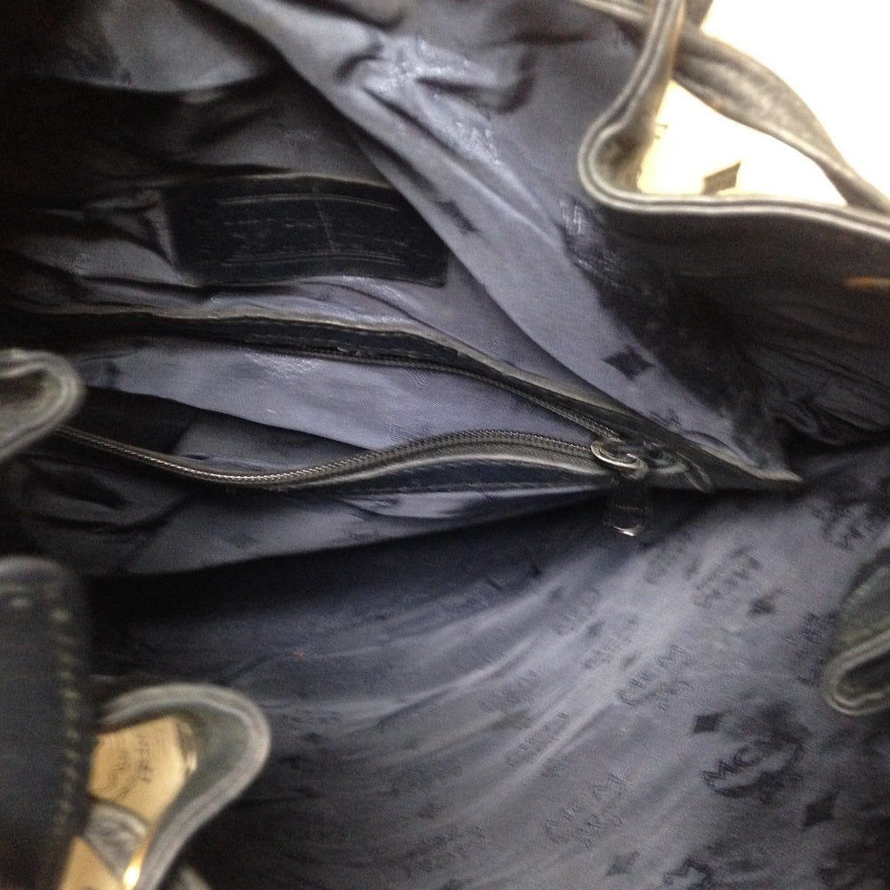 MCM White Mono- Blue Leather Bucket-Drawst…