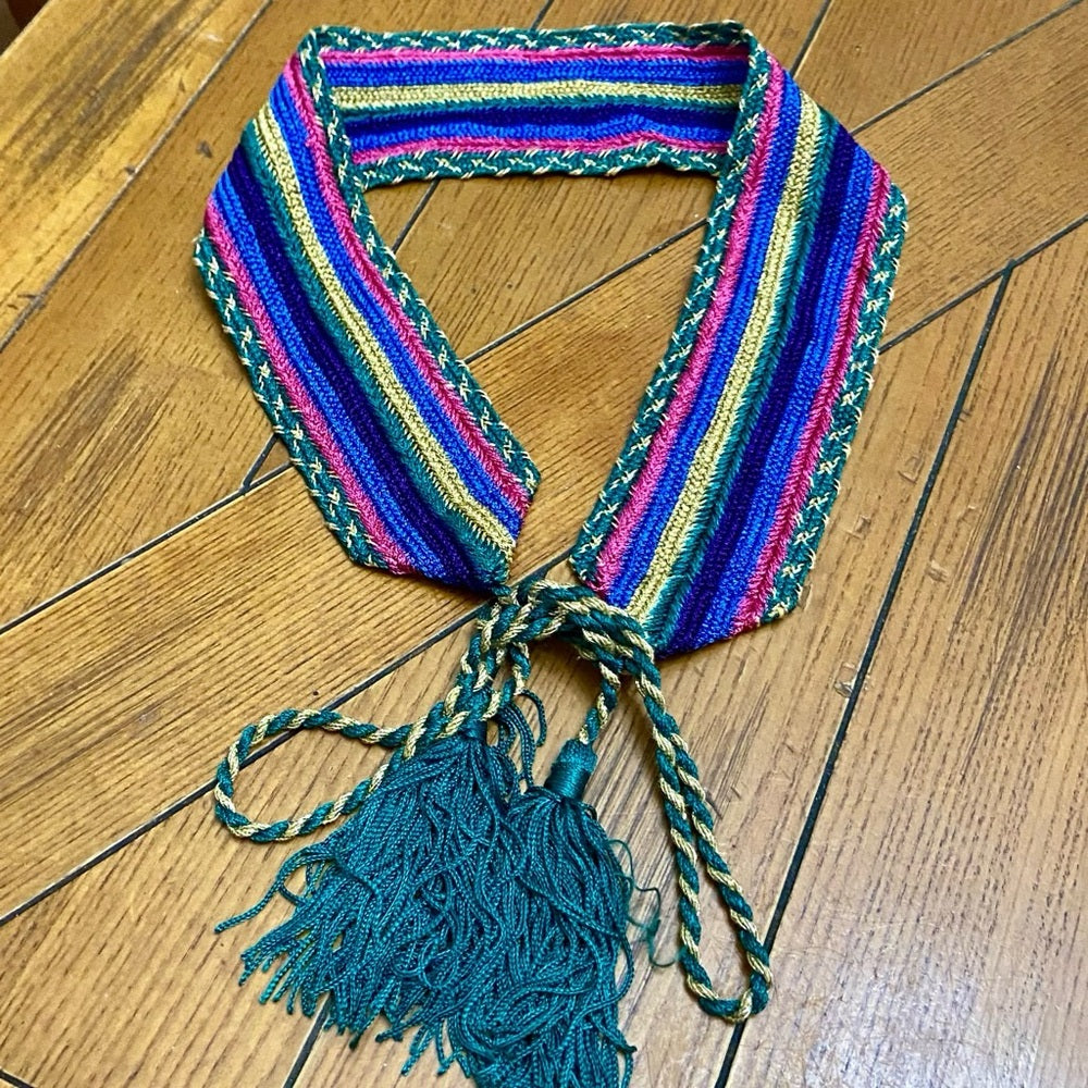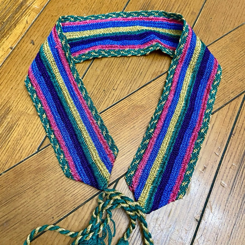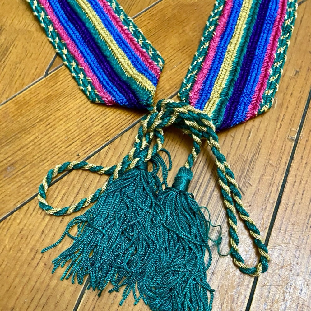 Belt: Multi-color Corded Belt: 28in x 2.5in; 20in fringes