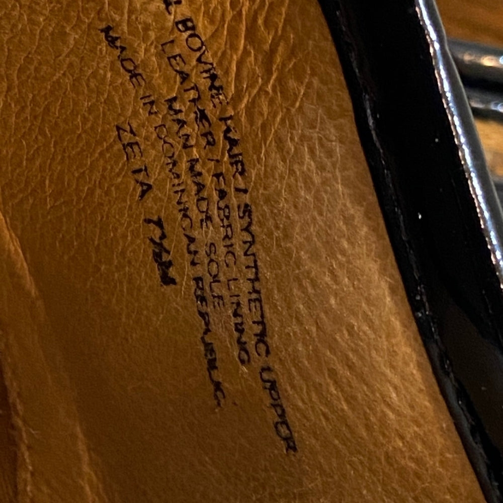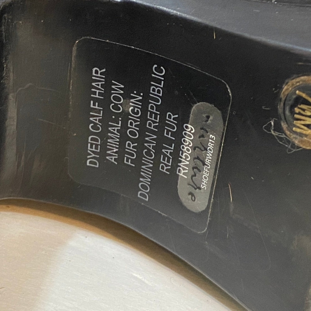 This is a beautiful pre-owned pair of animal print clogs that are decorated with a buckle and made with dyed cow hair. Size 7.5, measures 9 inches long, 3.5 inches wide, and 3.5 inches high. It is in good condition with minimal wear as shown in photos. It is marked Nurture.