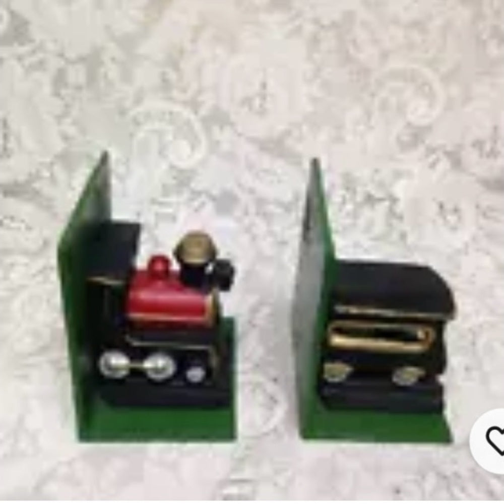 This is a beautiful pair of bookends depicting a train. Each one measures 6 inches high, 4 inches wide and about 4 inches deep.