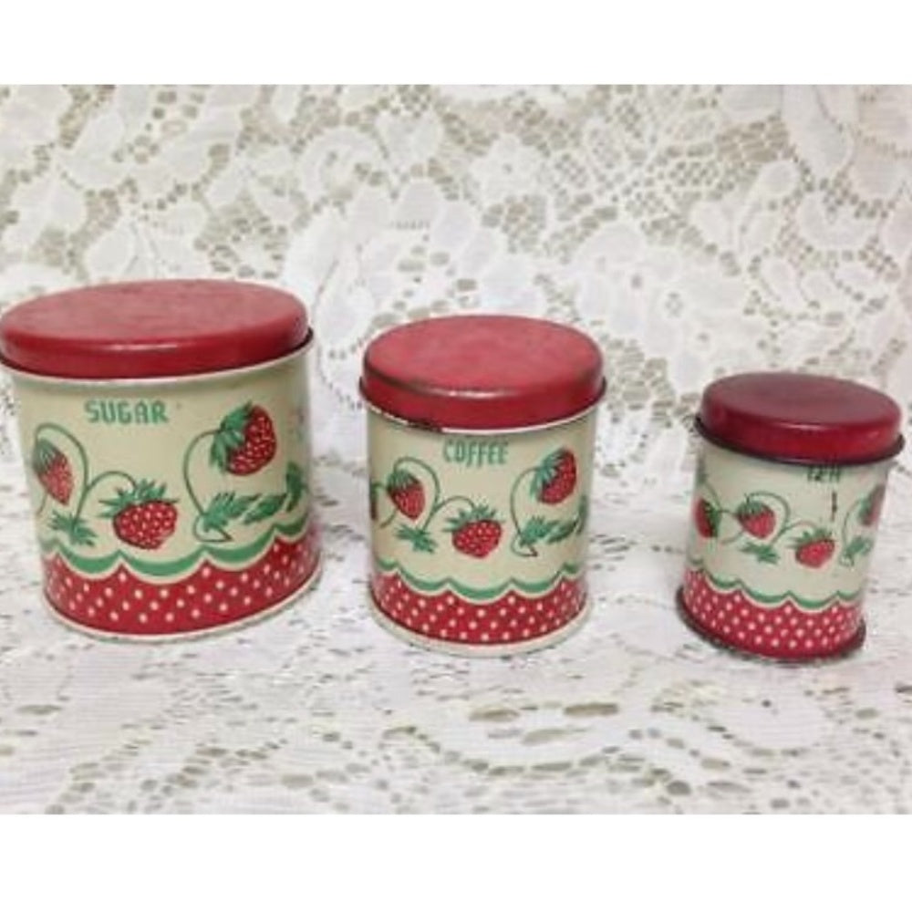 Rare 1950s Child’s Wolverine Strawberry 6-pc Canister Set