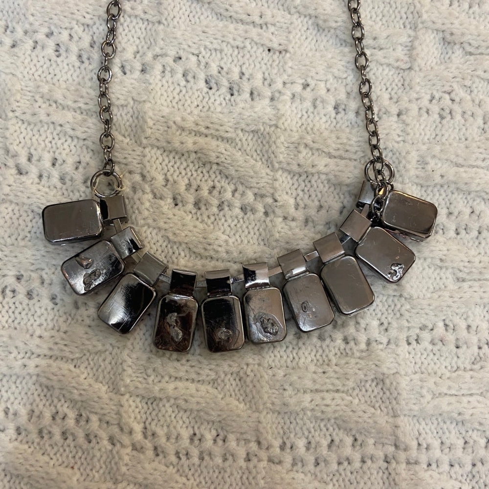 This is a beautiful silver toned necklace with faux rubies. It is in good condition with minimal wear as shown in photos. The pendant measures 5" long and 1" wide. The silver toned chain measures 16.5" long. Please super size photos for condition details.