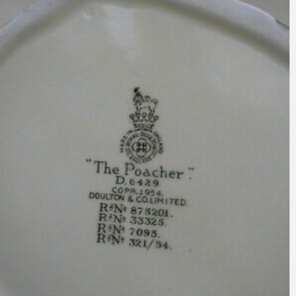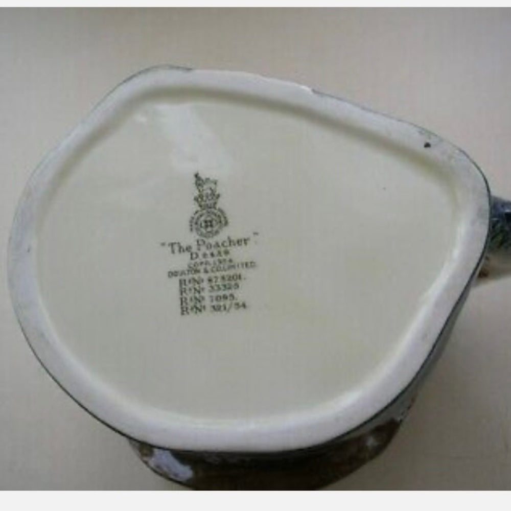 This is a beautiful figural pitcher depicting “The Poacher” It measures 6.5 inches high and 8 inches wide. It is in great vintage condition, no chips or cracks as shown in photos. It is marked: Royal Doulton, England; Doulton Co. Ltd.; The Poacher D-6429, COPR 1954; RN 875201; P.N. 33325, 7095, 321/54.
