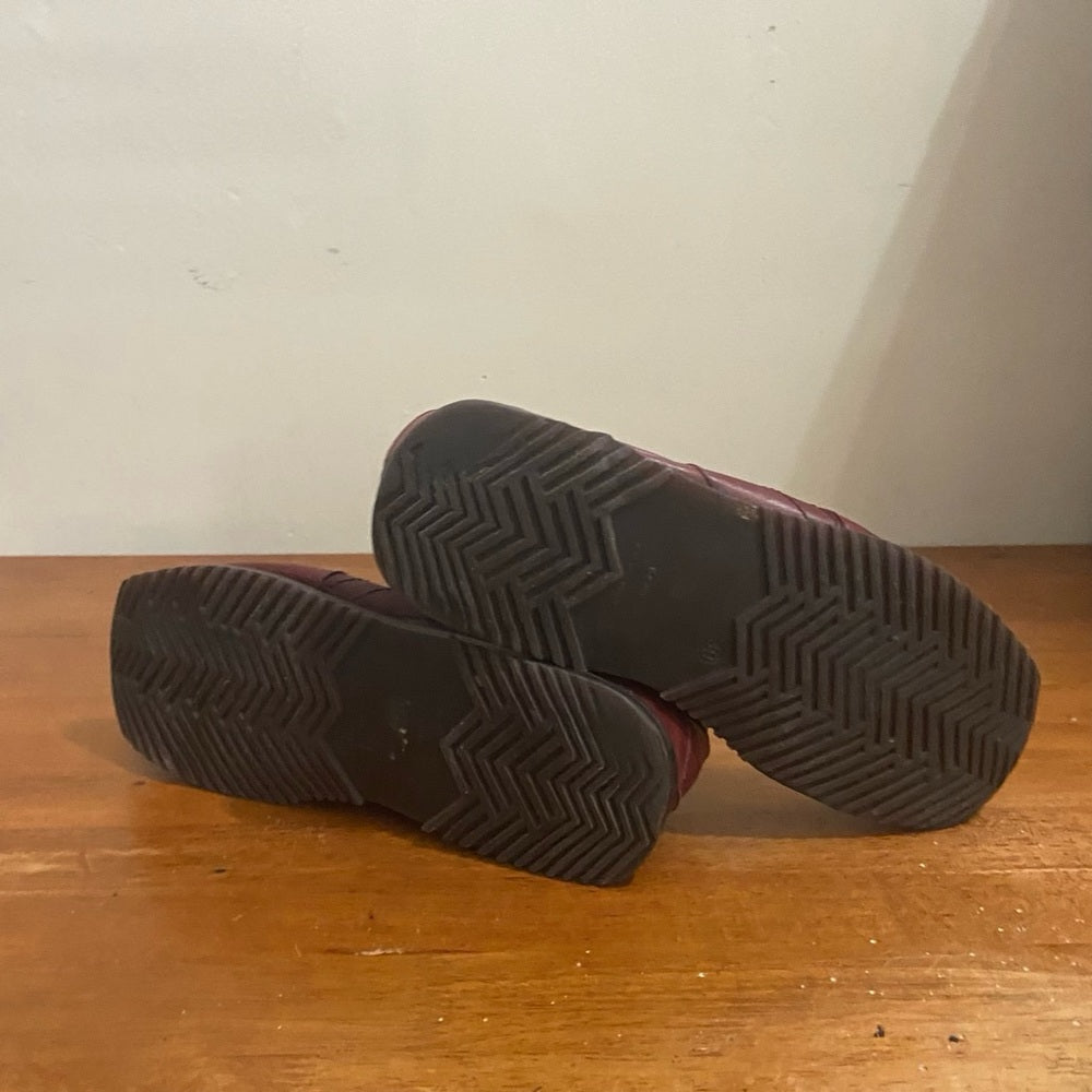 This is a beautiful pair of shoes made of burgundy leather. It is Size 39 or 8.5 and it measures 10.5 inches long and 4 inches wide. It is aboutt 3.5 inches high including 1-inch platform. It is in good condition as shown in photos.