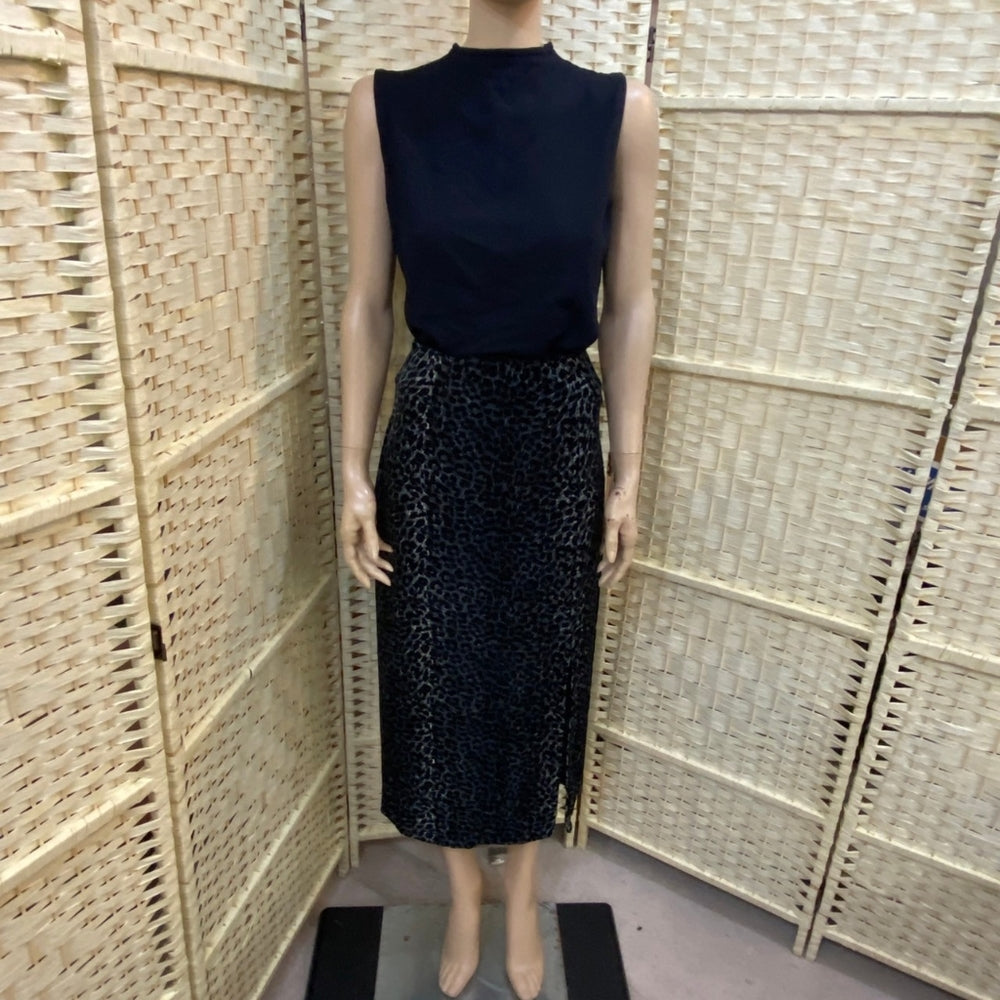 Silver Blue Black Velvety Cheetah Print Skirt - Size M