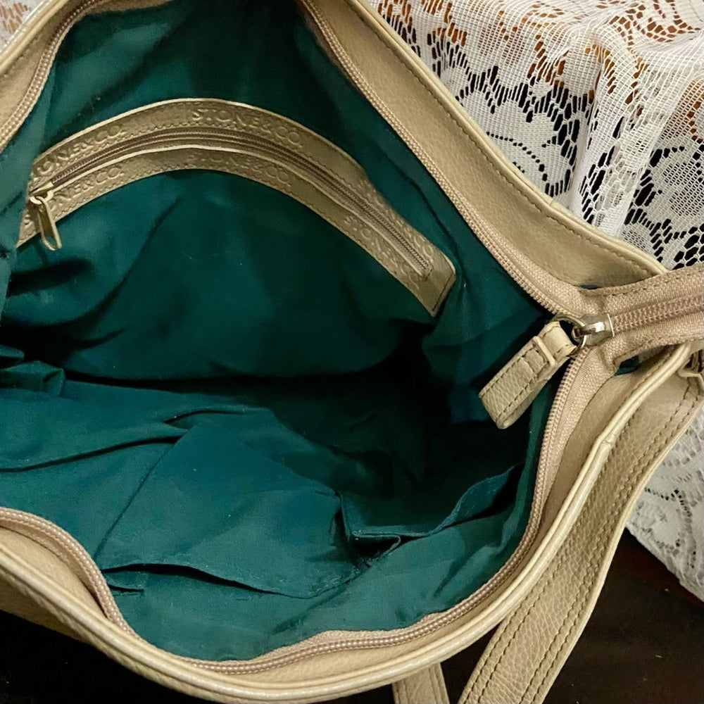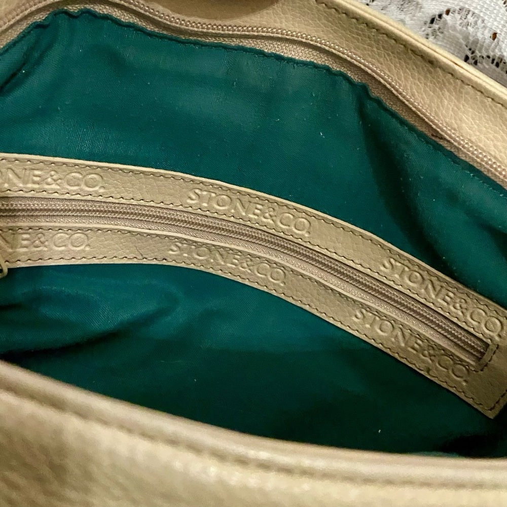 Stone & Co., Beige Genuine Leather Shoulder-Crossbody Bag 9.5in x 9.5in x 3in