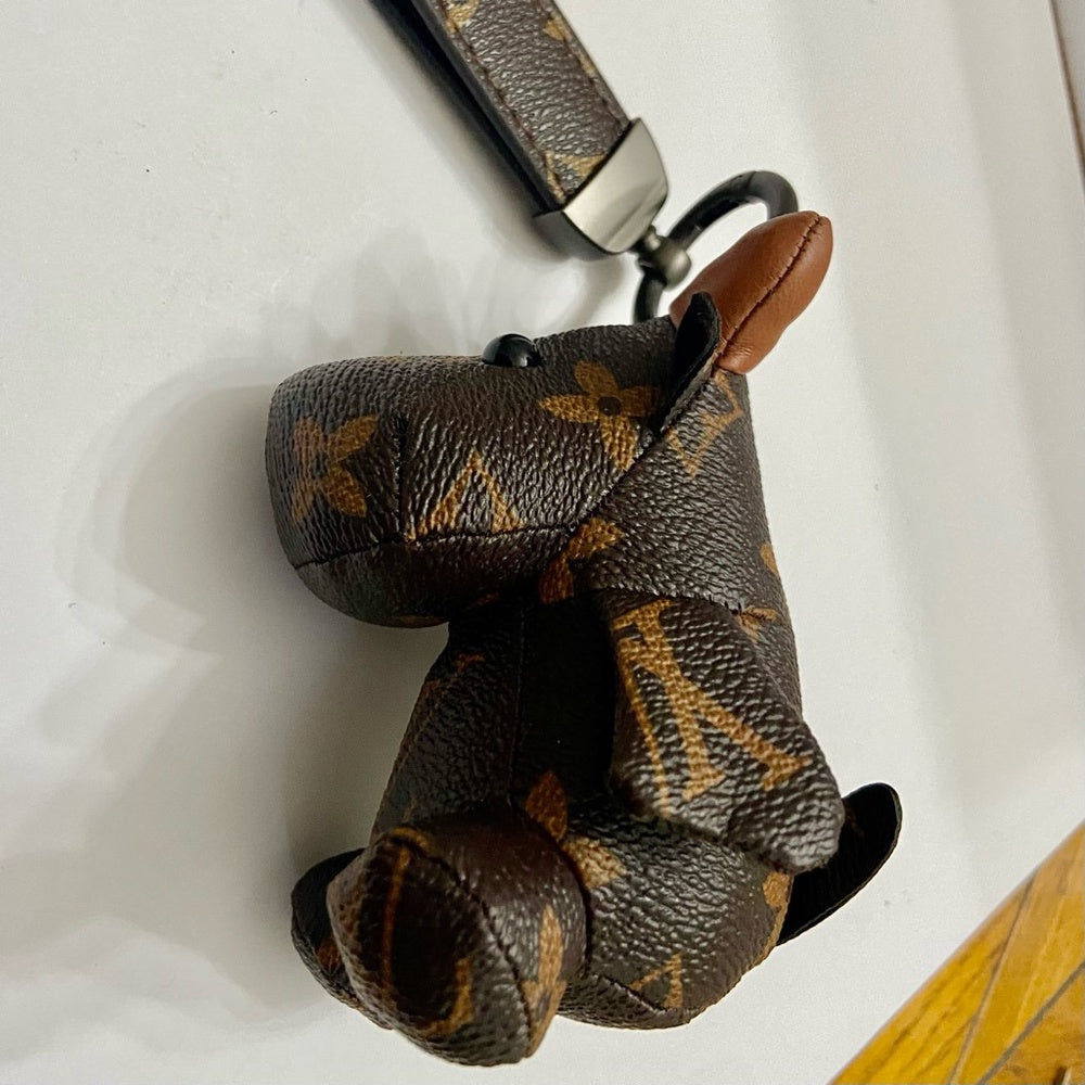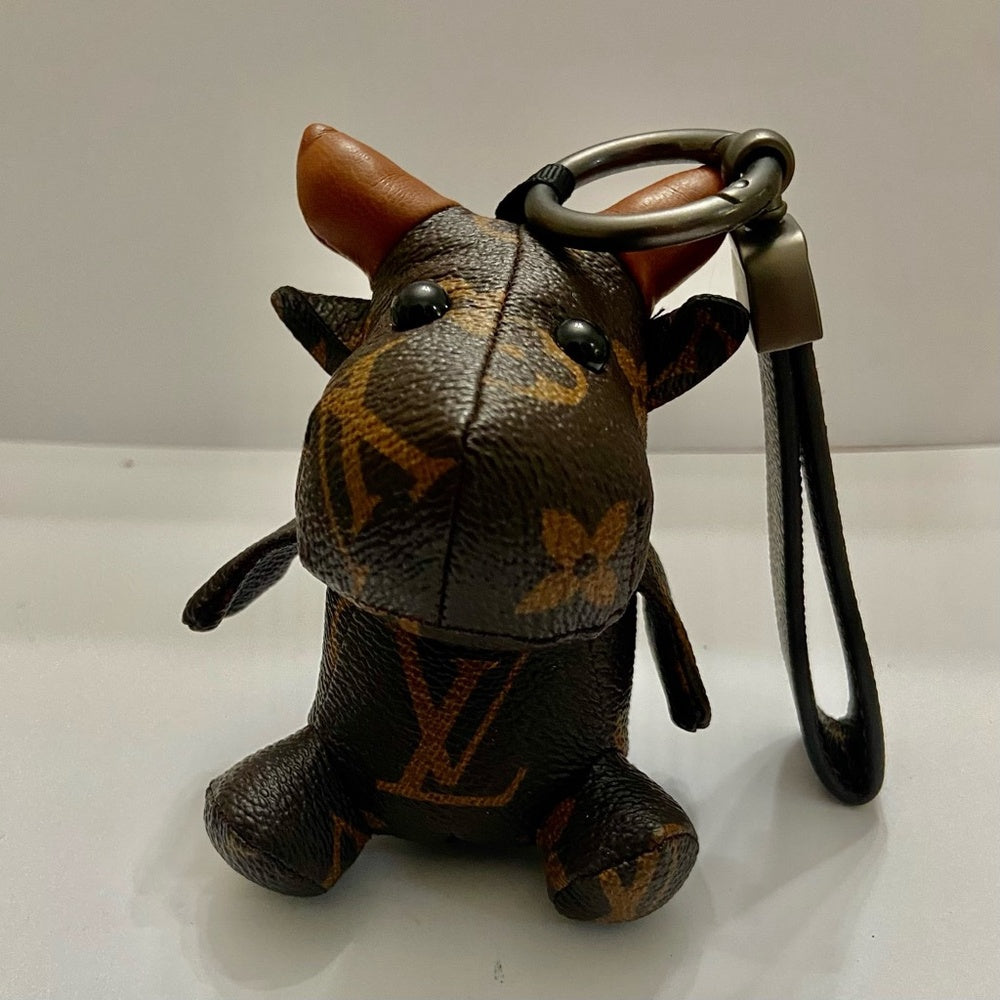 This is a stunning 2-way charm, depicting a brown faux leather cow that you can use to accessorize your handbag, or use it as a key chain. It is in very good condition as shown in photos. Together in measures about 6 inches long. Together it measures about 8.5 inches long and the cow measures about 4 inches long and 3 inches long.