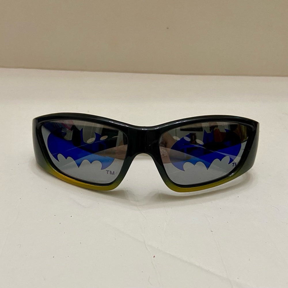 This is a Batman sunglasses for kids and it measures about 5 inches long and the lenses is about 1.5 inches high and 2.5 inches wide. The frame is in good vintage condition as shown in photos. The temple has markings as shown in photos.