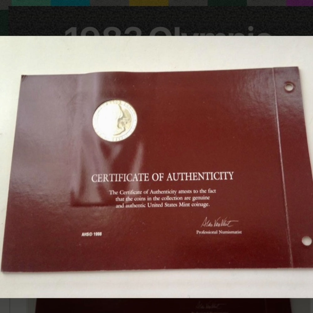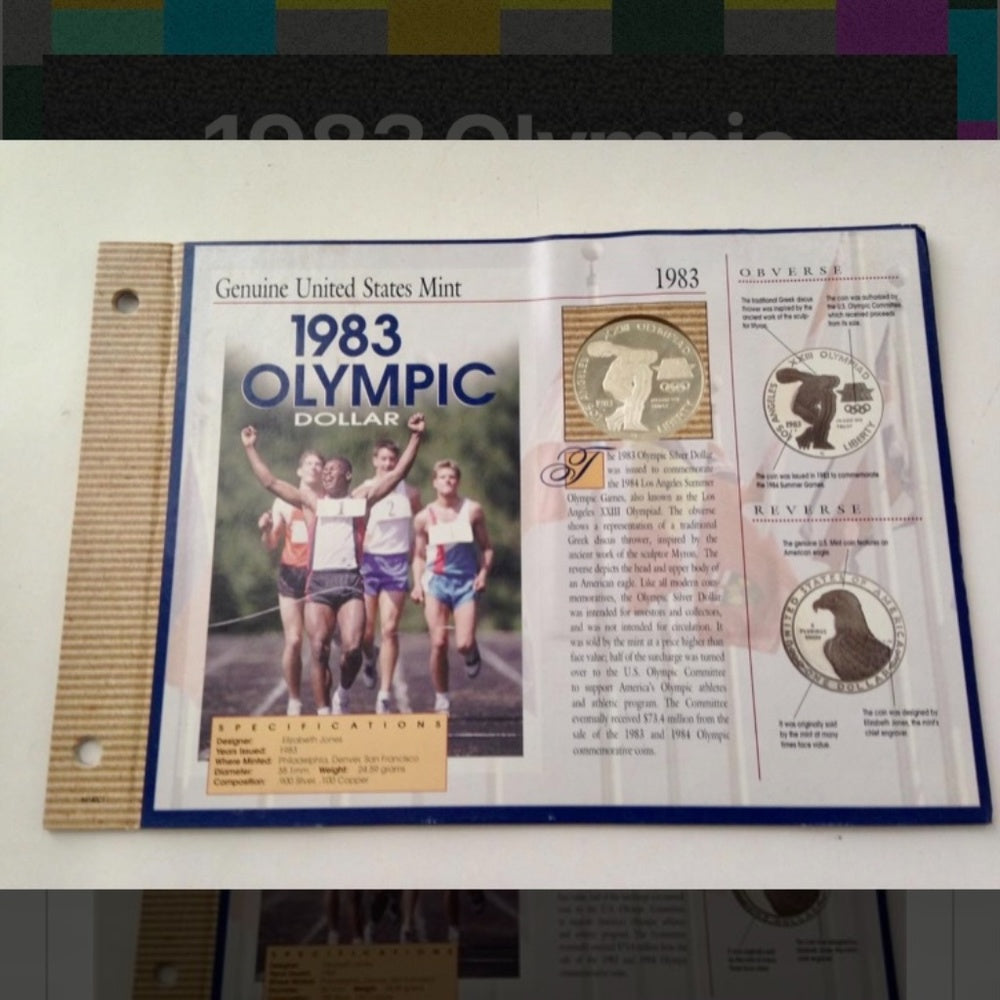 This include a history about the 1983 Olympic Dollar with Certificate of Authenticity. The coin is in mint condition as shown in Photos.