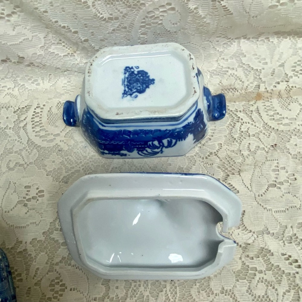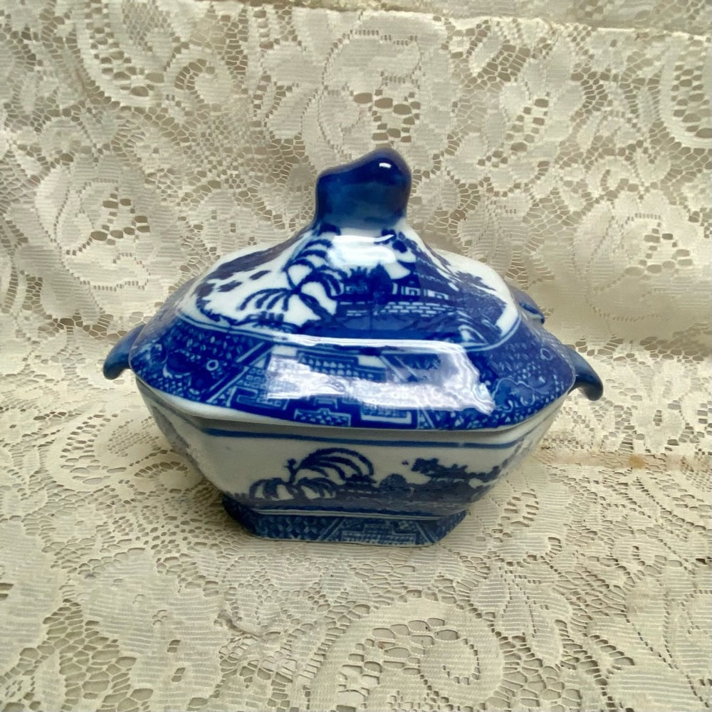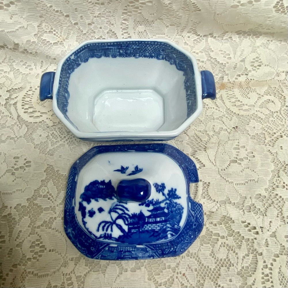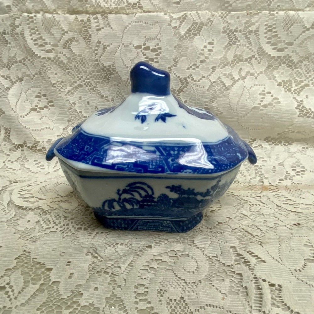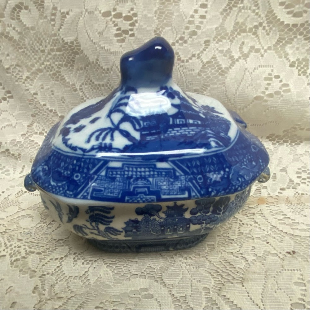 Variant Blue Willow Ironstone Small Tureen or Gravy with Li8inL x 6inW x 5.5inH