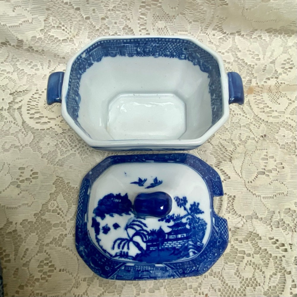 Variant Blue Willow Ironstone Small Tureen or Gravy with Li8inL x 6inW x 5.5inH (TJ0723)