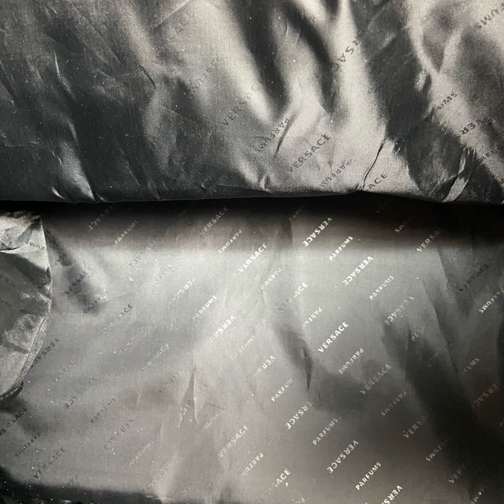 This is a new without tag, Large gilded hemp tote given as complimentary gift to VIP customers with huge purchase. It measures about 16 inches long, 13 inches high and 8.5 inches wide. It is in very good condition and never been used as shown in photos. It is labeled : Versace.