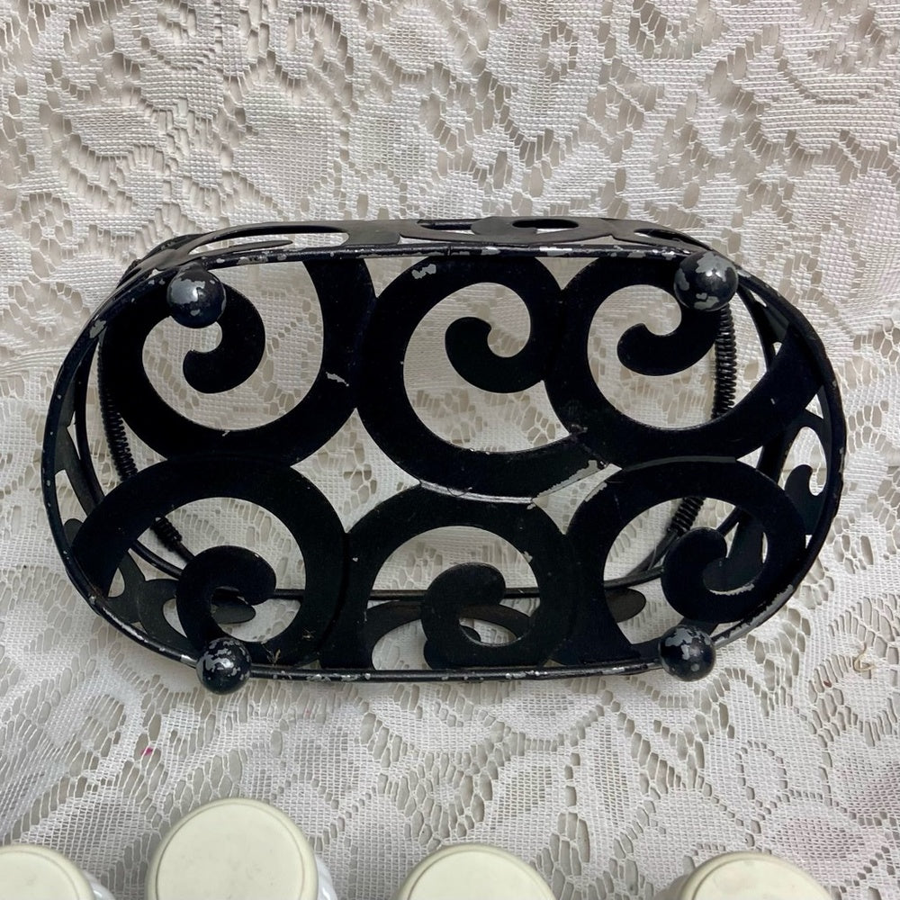This is a beautiful milk shaker set of 10 spices plus 1 metal rack. The milk glass spice shakers measures about 4 inches high and 2 inches in diameter. It is decorated with the popular blue willow pattern. The blue willow design are not original or were added by a blue willow enthusiast. . The metal stand measures about 4 inches high, 9 inches long and about 5 inches wide. This set is in very good condition as shown in photos. Package weight is about 4-5 lbs.