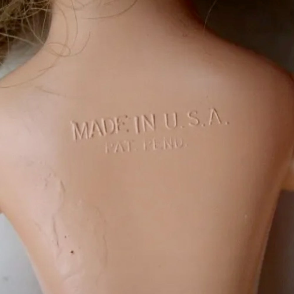 This is a beautiful doll made of composition head but her arms, legs and body seems to be made of quality hard plastic material that resemble composition. She measures about 14 inches tall and she is wearing a printed white dress with dark blue velvet top and pair of beige shoes. She resembles Shirley Temple but I guess she is Cindy or Roberta. Her hair needs washing and grooming but overall she is found to be in good condition with minimal age wear as shown in photos. She is marked: Made in USA, Pat. Pending