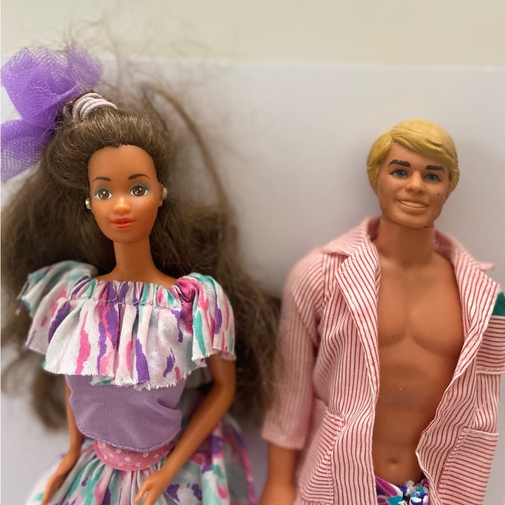 This is a beautiful Barbie Doll depicting Ken in his original red and white Shirt. He measures about 12 inches high. He is in good vintage condition with minimal wear and soiling as shown in photos. It is marked: 1968, Mattel Inc., Hong Kong. The last 2 photos shows a vintage Barbie doll being old sold separately in another listing.