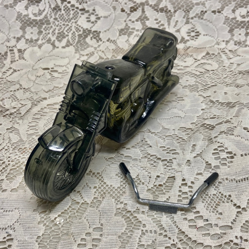 This is a beautiful collectible after shave decanter, depicting a motor cycle made of greenish glass. It measures 8 inches long, 4 inches high and 2 inches wide. The original box measures 8 inches long, 4 inches high and 2 inches wide. It wasn't used or new in box (NIB) with original contents and sticker as shown in photos.