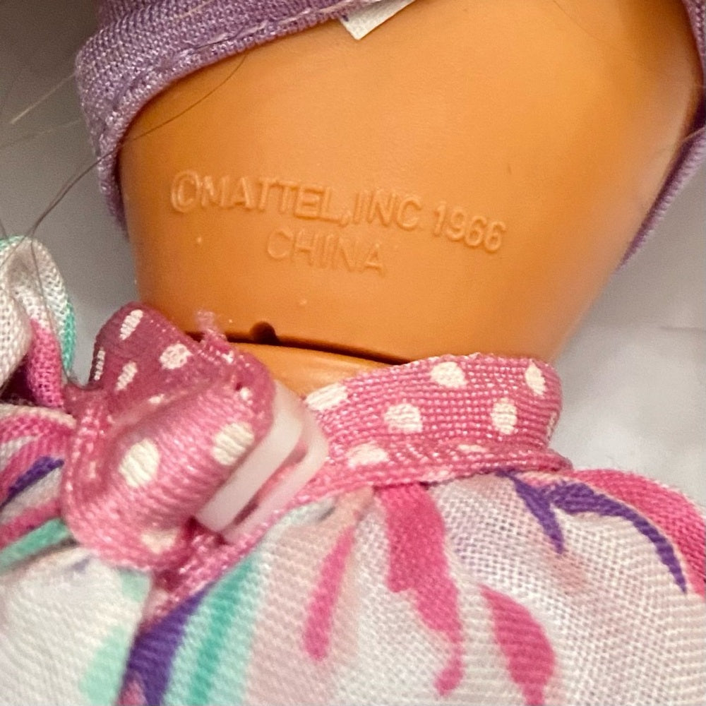 This is a beautiful Barbie Doll dher original purple dress. She measures about 12 inches high. She is in good vintage condition with minimal wear and soiling as shown in photos. She is missing her shoes and her hair needs grooming. It is marked: 1966, Mattel Inc., China. The last 2 photos shows a vintage Ken being old sold separately in another listing.