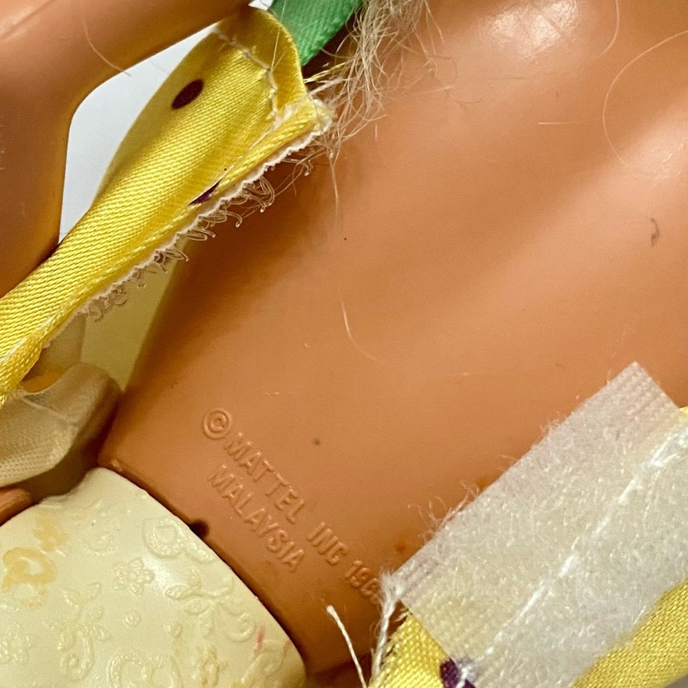 Vintage 1980s Mattel Barbie Doll in Yellow Mini Dress