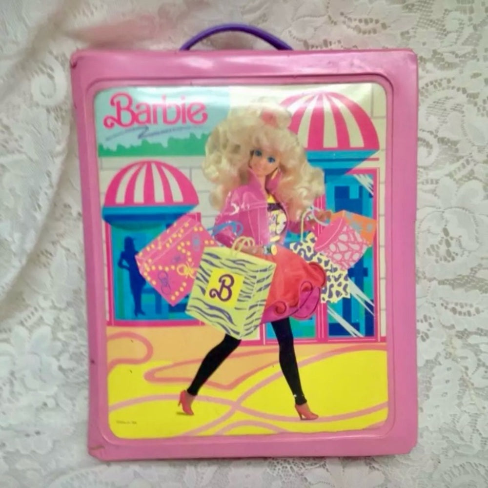 This doll case measures 12.5 inches long, 10.5 inches wide and 3 inhces deep. It has the previous owner's name marked on this doll case but overall it is in good condition with normal wear as shown in photos. It is marked: Mattel Inc., 1989.