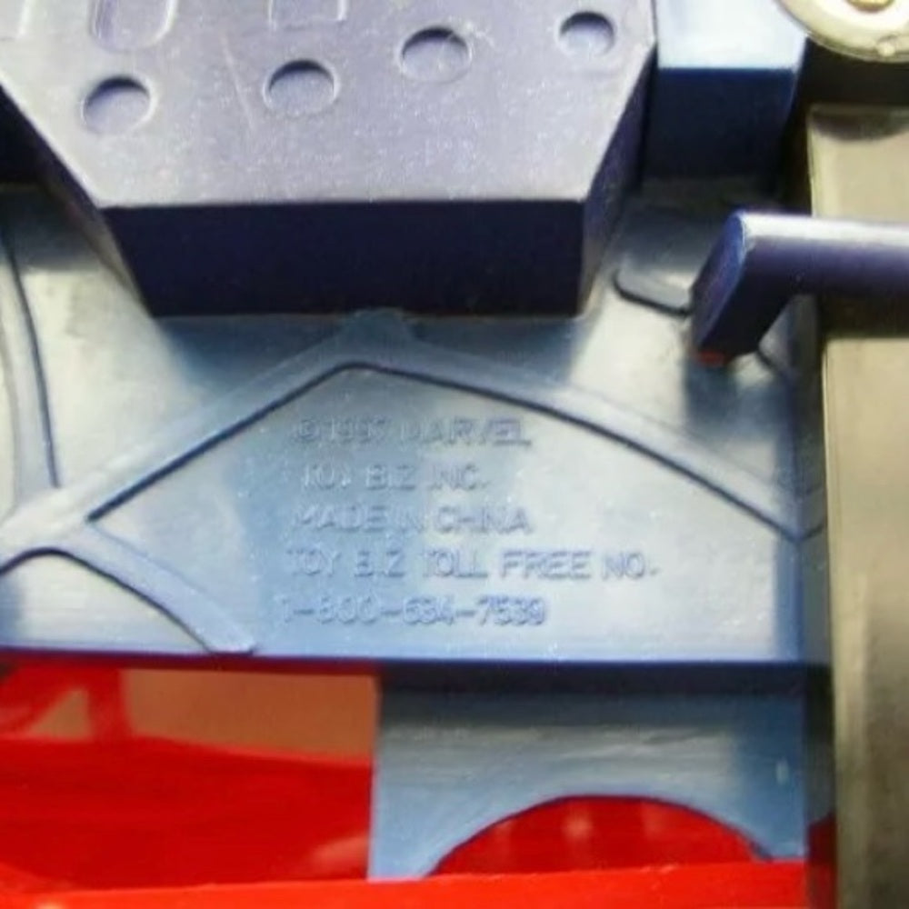 This is a wonderful toy, made of red plastic and depicting Spiderman‘s amazing automobile. It measures 4 inches high, 17 inches long and 7 inches wide, excluding the side bumpers. One side bumper is broken but the other side can easily be removed as well and overall it is in great condition with minimal wear as shown in photos. It is marked: © 1997 Marvel Toy Biz, Inc., Made in China.