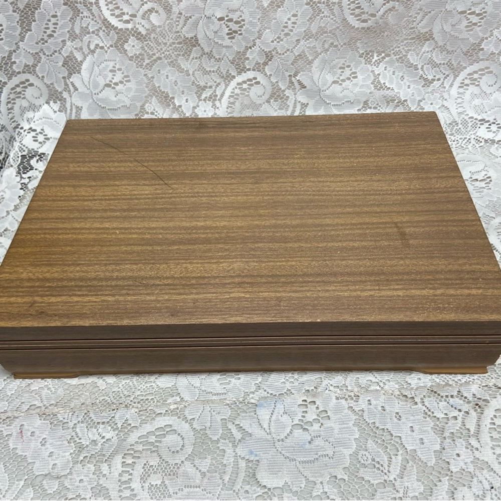 It is missing one dinner fork but overall it is in good vintage condition with minimal wear as shown in photos. It comes with a wooden box. The set is marked: Estia, Korea. The package weight is about 8-10 pounds.