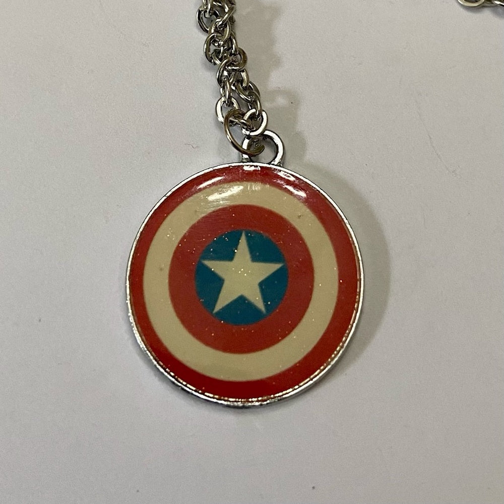 This is a beautiful, 5 sets of Marvel pendant necklace such as: Batman, Spiderman, Superman, and Capt. America. It is in very good vintage condition as shown in photos. The pendant measures 1-inch in diameter and comes with a 20-inch silver tone chain.