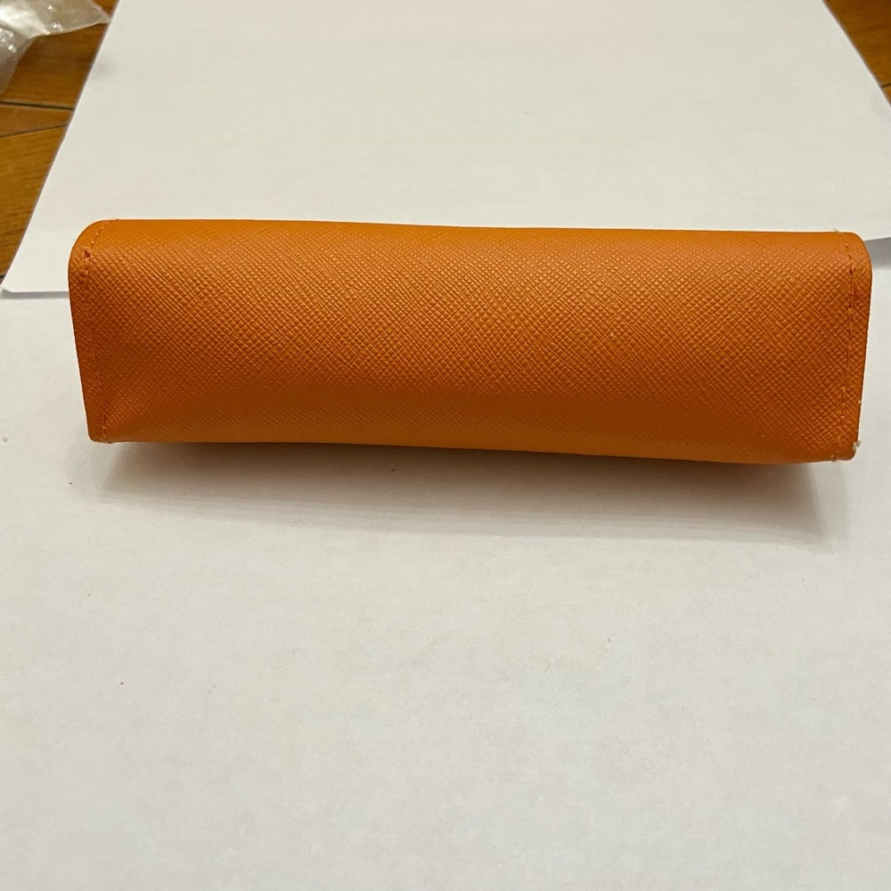 This is a pre-owned Tory Burch sunglasses with case. The frame looks like tortoise shell but it’s decorated all over with the known symbol of Tory Burch. The end of each arm have the gold Tory Burch symbol as well. The sunglasses measures 5 inches long and about 2 inches wide. The orange case measures about 6.5 inches long. It is in good condition with minimal wear common to used sunglasses as shown in photos. It is marked: Tory Burch S CE on right arm; TY 7039 1943/13 58#16 130 2N in the left arm. Please supersize photos for condition details.