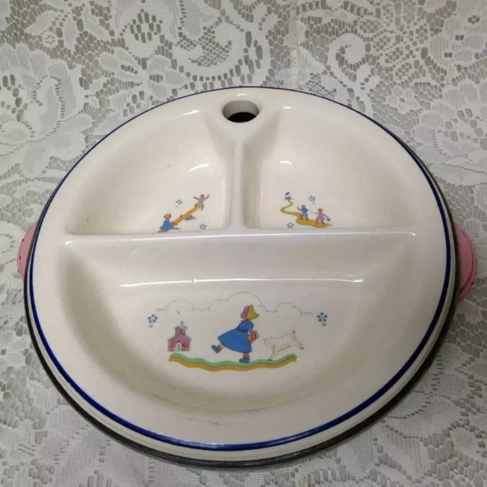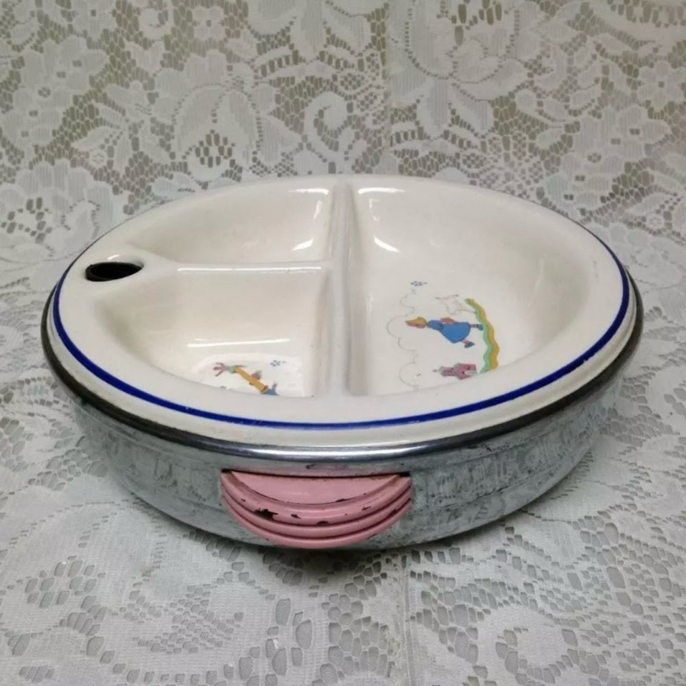 Vintage, Bartsch Mfg. Co., Bopeep - Jack and Jill Chrome Infant Dish with Warmer