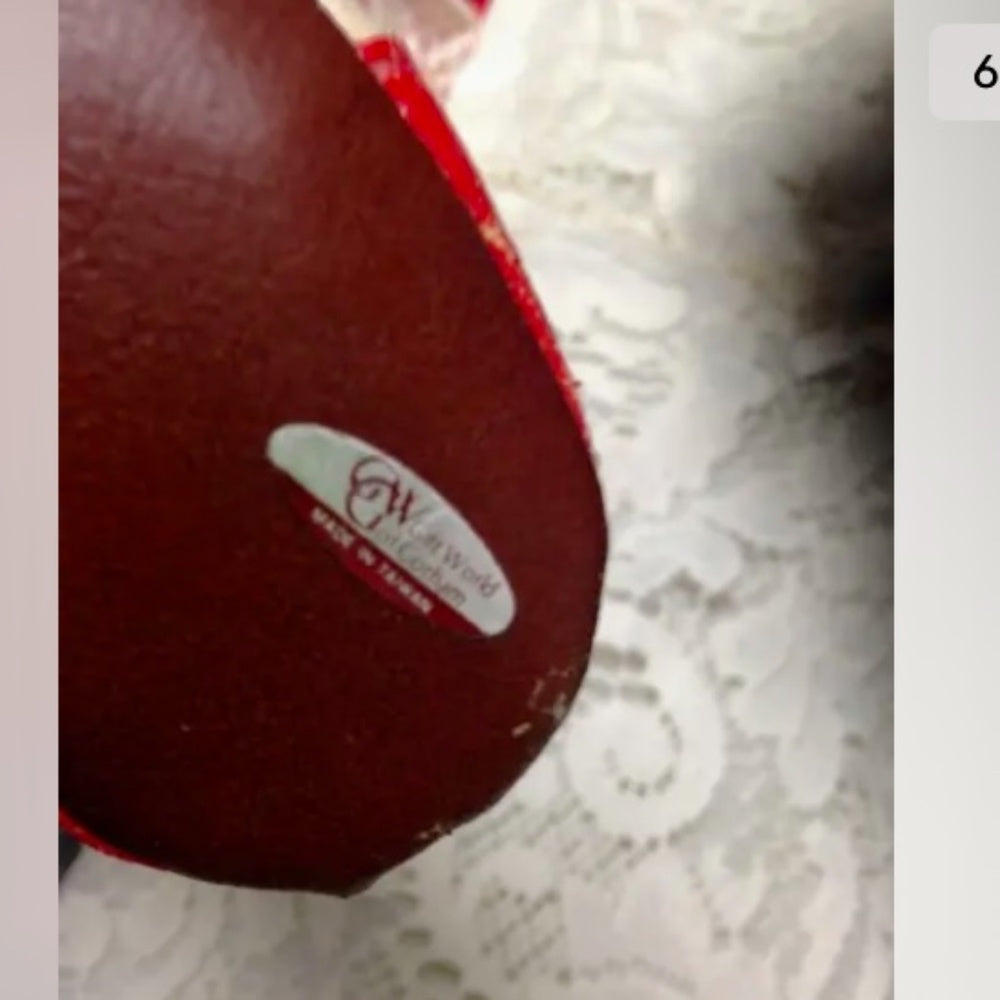 This is a very large, fabric doll with painted face that resembles Lenci Dolls of Italy. She measures about 20-inch tall with red and white dress and matching boots. It has a makers sticker label on her boots sole that reads: Giftworld of Gorham. Package weight is about 3 pounds.
