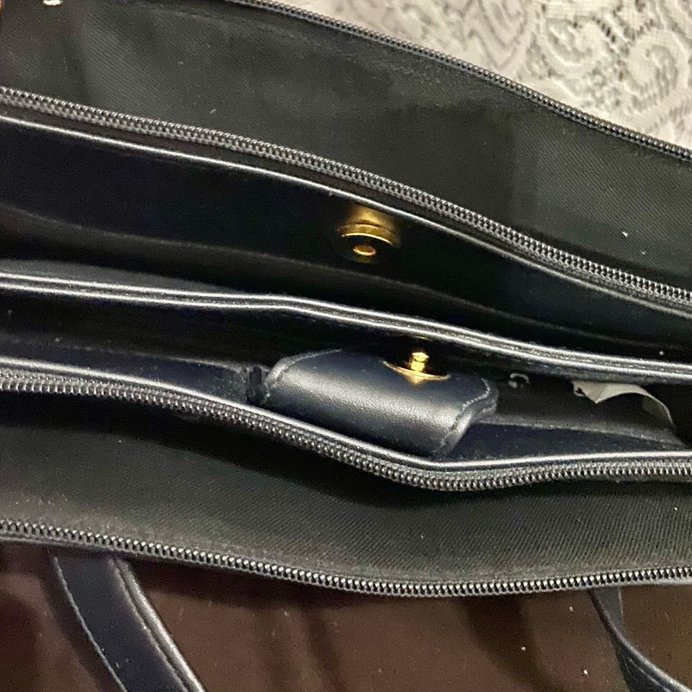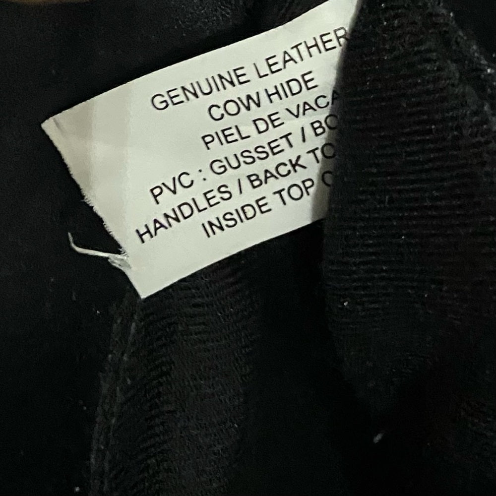 This is a beautiful, handbag made of black cowhide leather. It measures 11 inches long, 9 inches high and 3 inches wide. The shoulder-crossbody strap is 40 inches long. It is in very good condition as shown in photos.