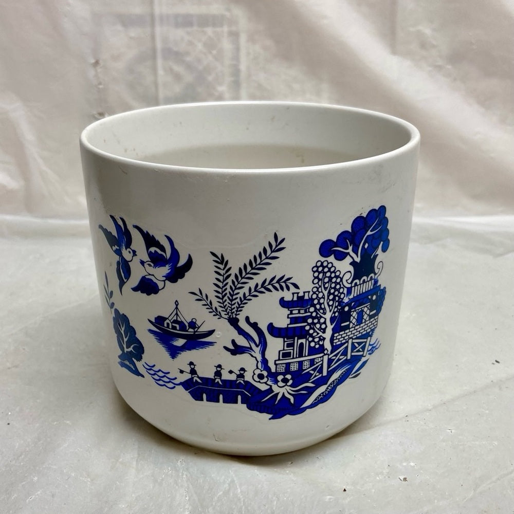 Vintage, Blue Willow Flower Vase or Planter 4.5in H x 5in D