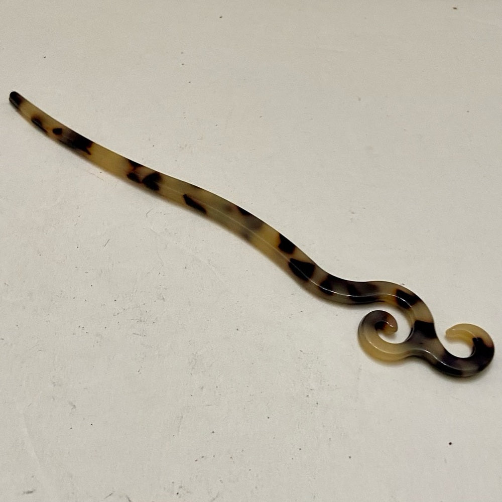 Vintage, Brown and Beige Tortoise Lucite Hair Pin Accessory 7in x 1in