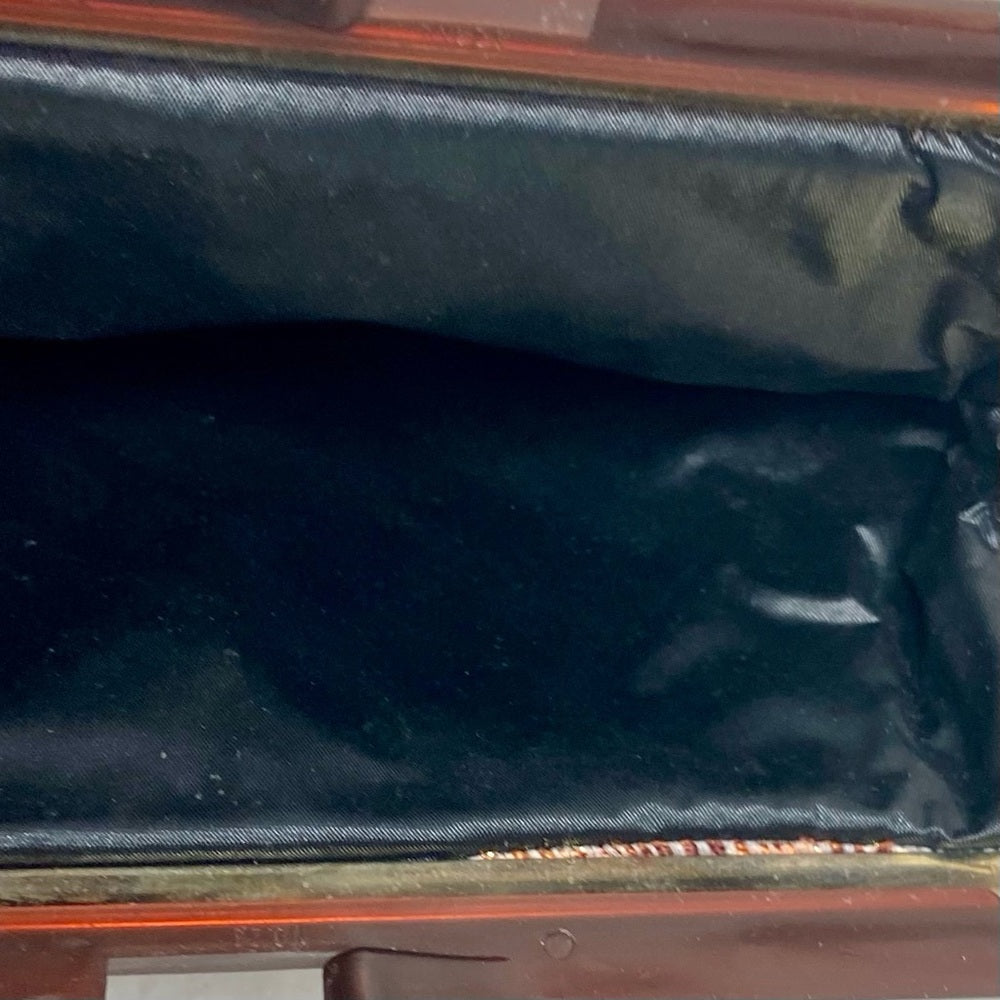 Vintage, Burgundy-Orange Paisley Clutch with Brown Lucite Clasp (C0525)