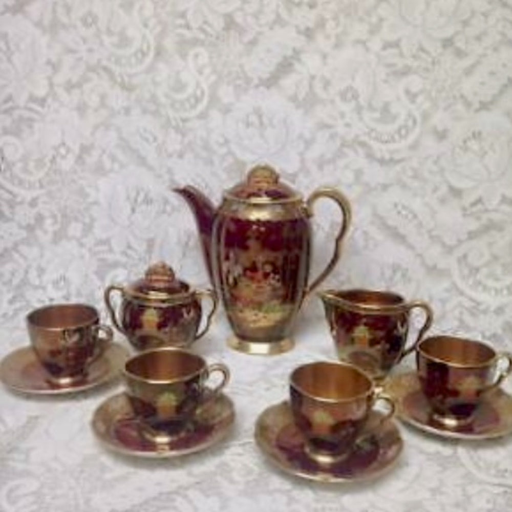 It is marked: Carlton Ware, Hand Painted, Made in England, Trademark, Rouge Royale. It is in very good vintage condition with minimal ware or crazing as shown in photos. Take note the cups and saucers are plain or doesn't have the variant willow design, also, the creamer's design is different from the teapot and sugar bowl. Package weight is about 5 pounds. Market or replacement value of this set is unknown due to the rarity of the tea set.
