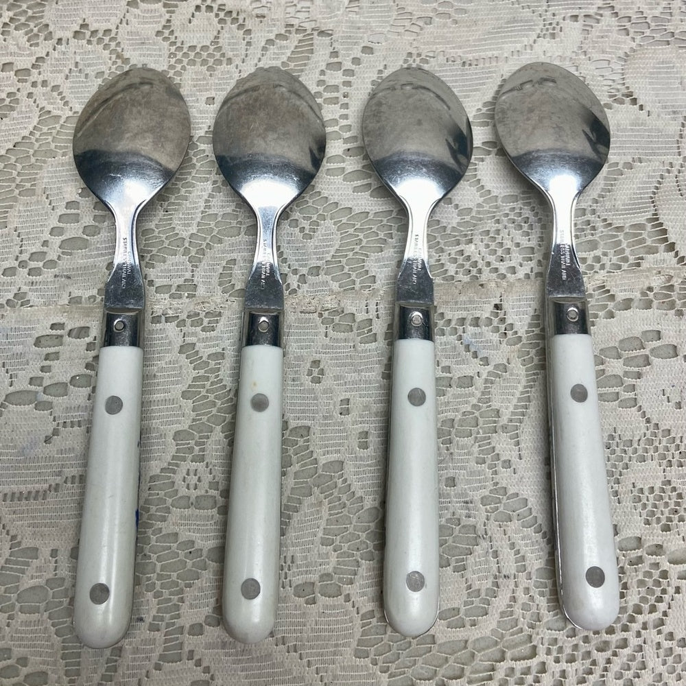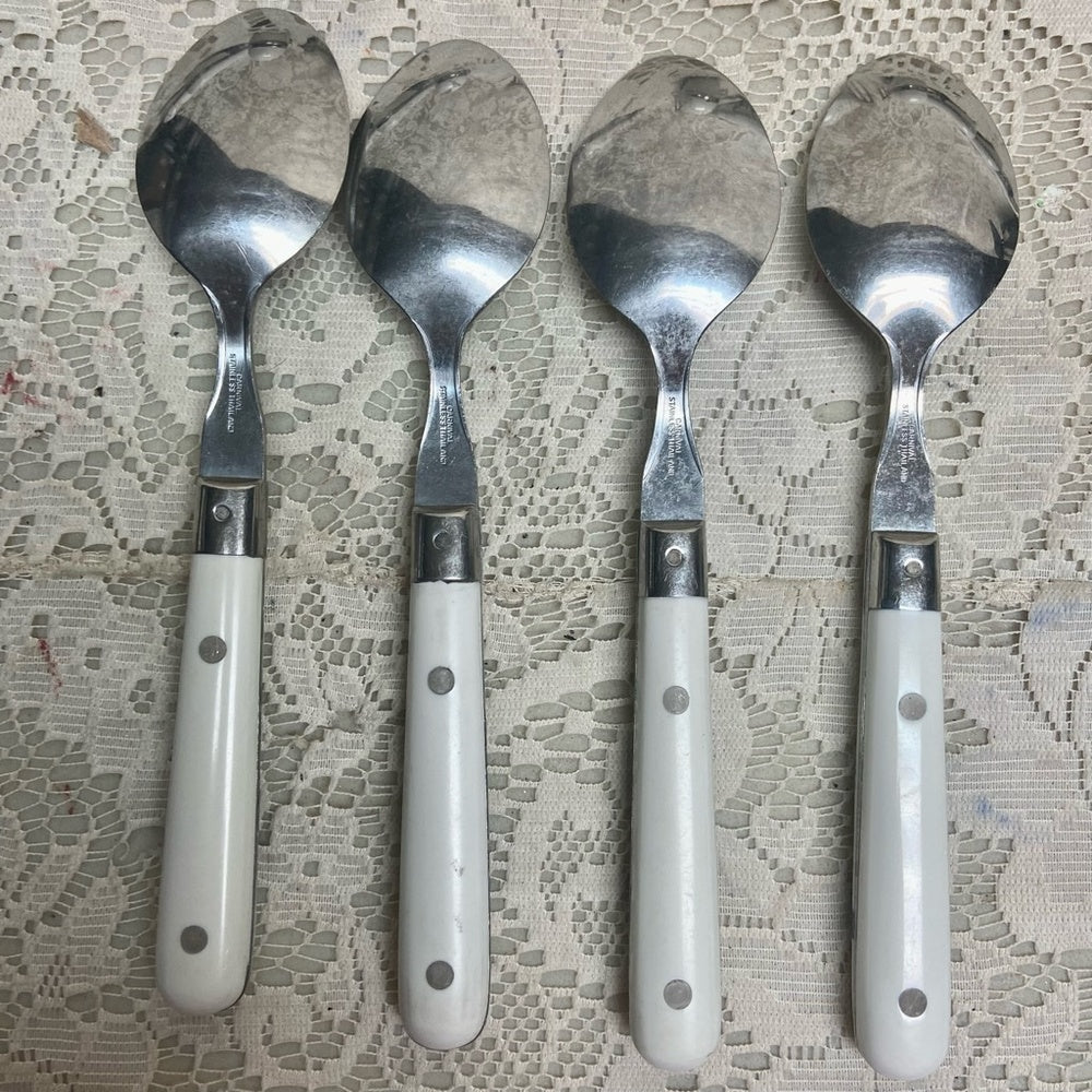 This is a beautiful and good quality 10-pc Blue Willow Flatware or Cutlery Set made of stainless steel with melamine handles, depicting the popular blue willow pattern. The blue willow design is not original and was added by previous owner. The set includes the following: