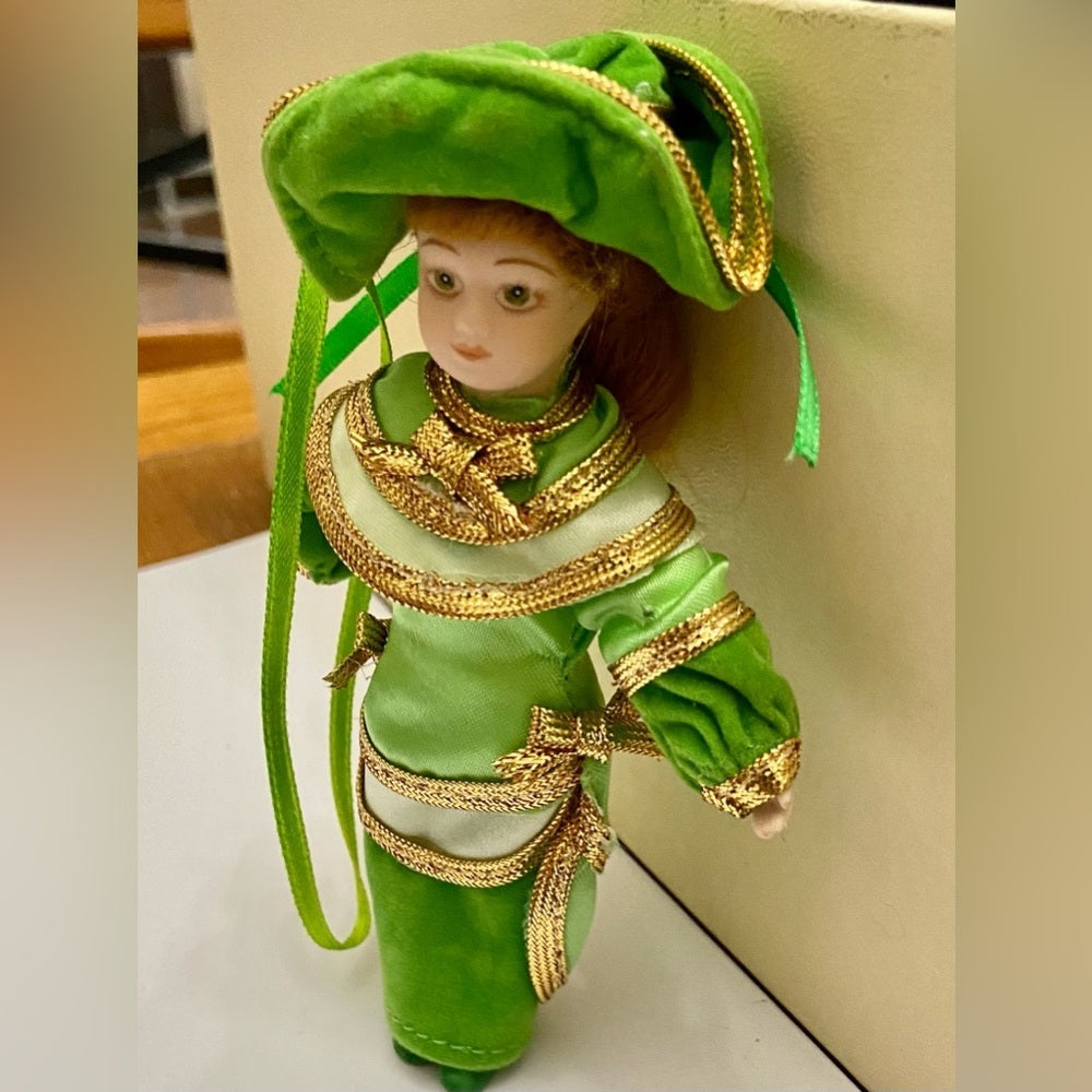 This is a beautiful Christmas Ornament, depicting one of the 25 Ladies of Fashion Christmas Ornaments by Danburry Mint. The doll measures about 5-6 inches tall and it is in very good vintage condition as shown in photos. The last 3 photos shows the complete Danburry Mint Collection of The Ladies of Fshion Christmas Ornaments.
