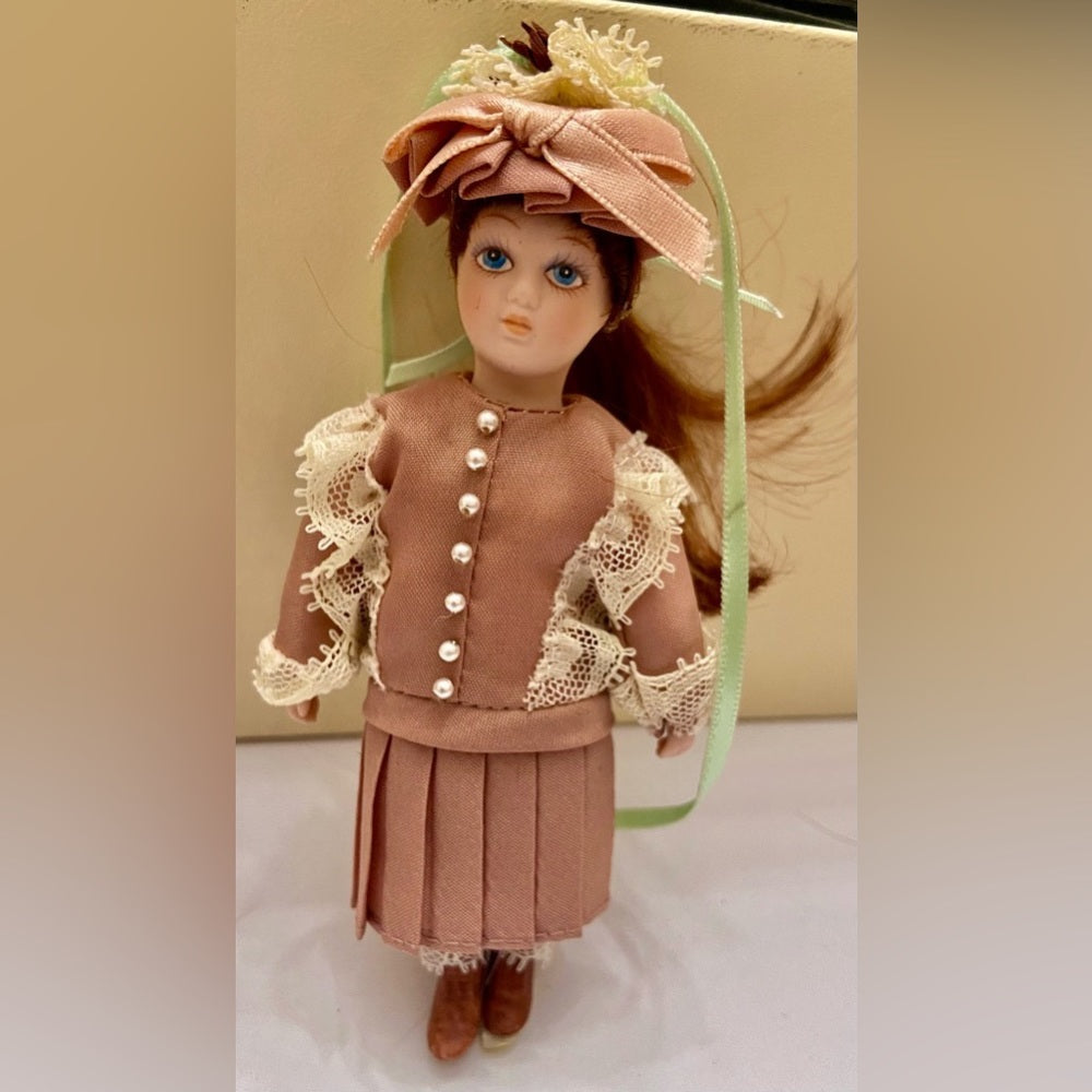 This is a beautiful Christmas Ornament, depicting one of the 25 Ladies of Fashion Christmas Ornaments by Danburry Mint. The doll measures about 5-6 inches tall and it is in very good vintage condition as shown in photos. The last 3 photos shows the complete Danburry Mint Collection of The Ladies of Fshion Christmas Ornaments.