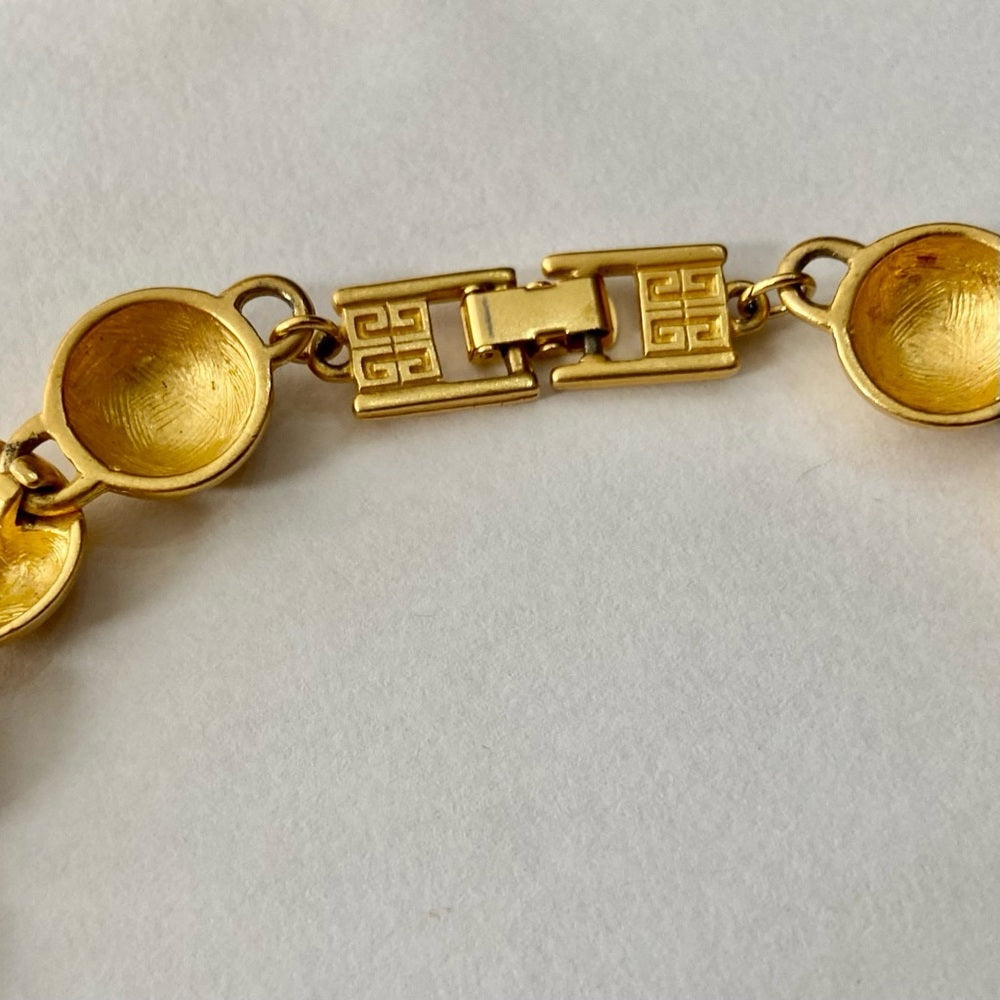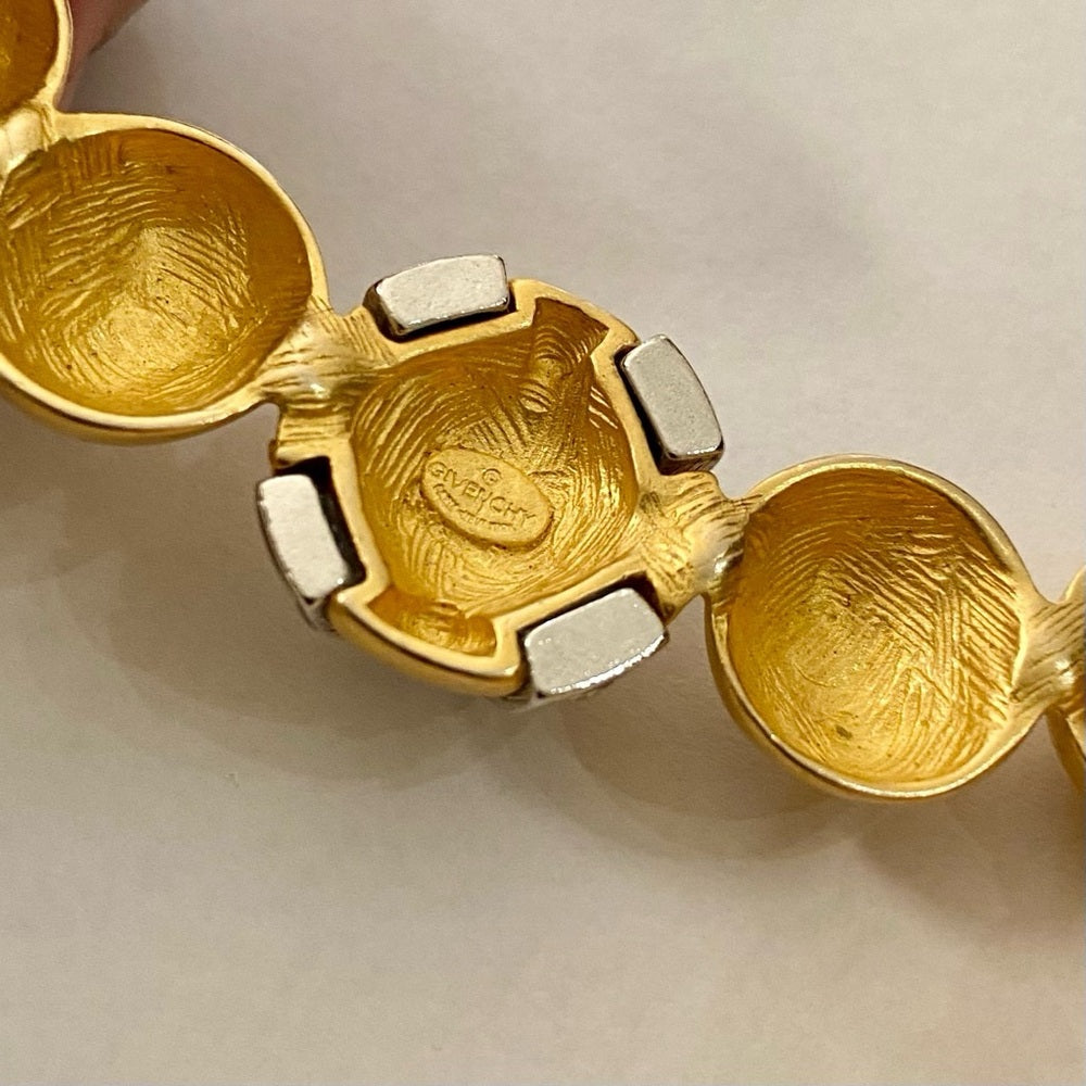 Givenchy began producing gold jewelry in the 1970s with particularly strong presence in the 1980s. The brand’s jewelry, including gold pieces is known for its bold luxurious designs and is often associated with the “power dressing” aesthetic of that era. Givenchy signatures such as: Givenchy Paris New York or Givenchy are usually found on an oval plaque and those made between 1975-1980 will be dated. The 1980s saw a significant expansion of Givenchy’s jewelry line with bold gold pieces including the iconic 4G logo on earrings and chunky chain necklaces becoming popular. Vintage Givenchy jewelry particularly from the 1970’s and 1980’s, remains highly sought after by collectors and fashion enthusiasts today.