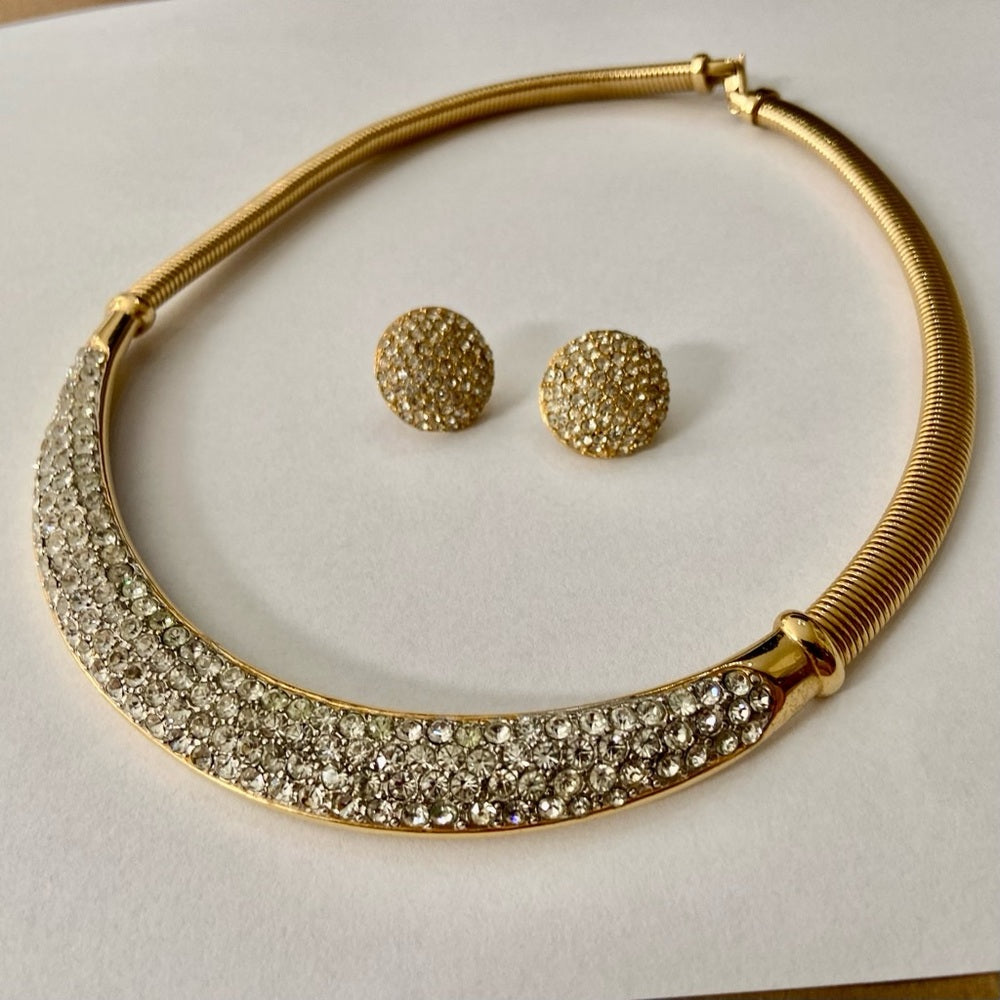 Vintage Givenchy, Paris New York Gold-Crystal Necklace and Earring Set
