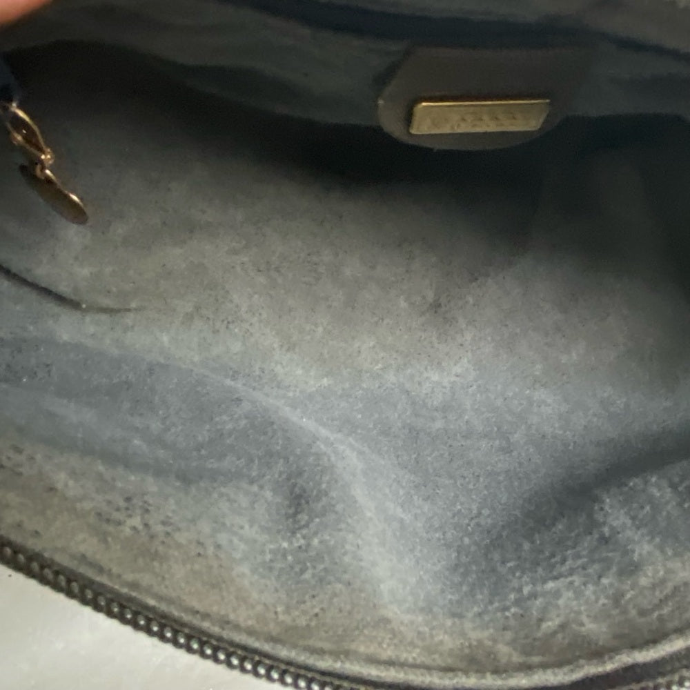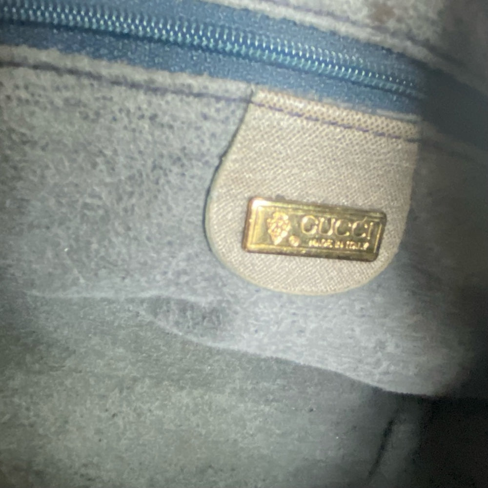 This is a beautiful, pre-owned adjustable shoulder-Crossbody bag 11 inches long, 6 inches high and 4.5 inches in diameter. The sherry line strap of 48 inches long is not original and was added to make it a crossbody. It has lining issues and the leather paint was removed. Also, the key chain leather band shows some age wear but overall this very rare vintage bag is in good condition with minimal wear and soiling as shown in photos. Gucci and the back of the label shows the serial no. as shown in last photo. Please supersize photos for condition details.