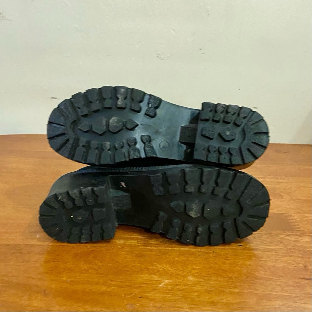 This is a beautiful pair of boots made of black canvas. It is Size 8 and it measures 10.5 inches long, 3.5 inches wide and 6 inches high. The heels is about 2 inches high. It is in very good condition as shown in photos. Take note one of the shoe lace end is missing the metal tip.
