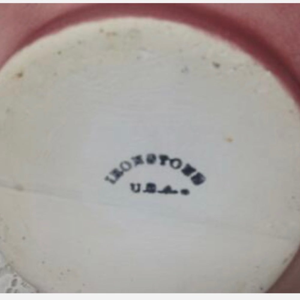 This is a beautiful, large set of pitcher and washbowl. The pitcher is decorated with floral decoration and the washbowl is decorated with a fleur de liz symbol. The Pitcher measures 12 inches high, 10 inches wide with handle and the body is about 9 inches in diameter. It is in very good vintage condition as shown in photos. Both Pitcher and Washbowl is marked: Ironstone, USA. Package weight is about 16 lbs.