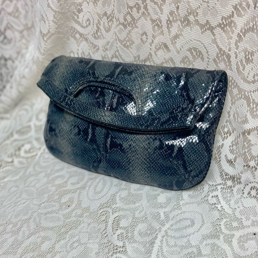 Vintage, Nine West Gray Faux Snakeskin Leather Clutch-Tote 13in x 12in